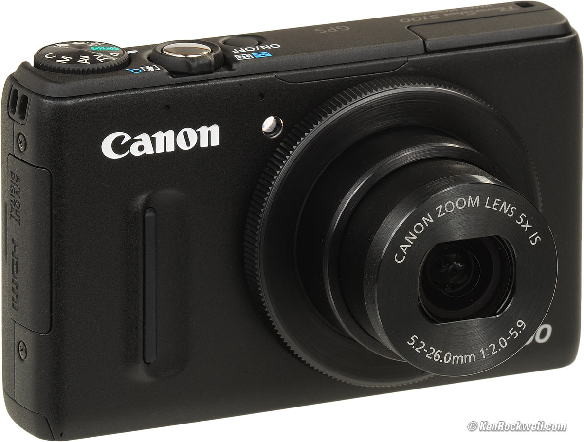 Recommendations top Intro Specs Performance Compared Usage Recommendations More Get the $30 Canon PSC-900 leather case. I got one for my S95, and it is also the same for my S100. It's very well made out of real leather, and works great. The S100 is the best pocket camera ever made by Canon, and Canon makes the world's best pocket cameras. If you want a camera this size, this is the best on earth as of 2012. If you already own a Canon S95, you don't need the S100, unless a feature like GPS means you've got to have it. 99% of everything is pretty much the same, even though some of the controls move around. If you have an S90 or S95 and want a second camera, don't get just one S100. Because the buttons are all in different places, get two of the same camera, not two different models. See also Is It Worth It? If you don't have an S95, of course get the S100. The S100 adds more operational speed, a broader zoom range and GPS. Otherwise, it's mostly the same as the S95 as far as photographers are concerned. Higher-resolution HD and GPS doesn't really matter, unless of course those particular features are important to you. If you've found all my work writing this helpful, my biggest source of support for sharing all this is when you use these links, especially these directly to the Canon S100 at Adorama in black and in silver, at Amazon in black and at at Amazon in silver when you get yours. Thanks! Ken (Note: Digital cameras are so disposable that manufacturers freely reuse model numbers. Canon also made a Canon S100 in 2000, which had 2 MP, a 2x zoom, a 1.5" LCD and was smaller than today's S100.)