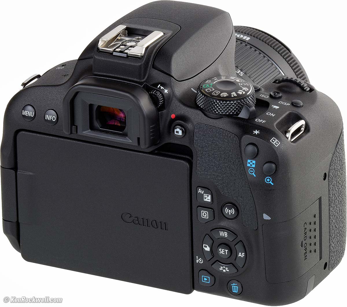 Good● First Rebel with a 45-point AF system. ● Can shoot-through the flicker of fluorescent, LED and vapor and lighting often found in gyms, restaurants, arenas and auditoriums so you won't get randomly underexposed or off-color shots at fast shutter speeds. ● High quality: Made in Japan and has free 100% USA customer support at (800) OK-CANON. ● Built-in flash. ● Built-in flash can work as a commander to control remote Canon flashes. ● [Q] Quick-Control button to get to most settings just like Canon's pro cameras. ● Swiveling touch LCD make it very fast to set, probably faster than Canon's pro cameras without touch screens! ● Electronic movie stabilization. ● Automatic lens aberration correction for vignetting, lateral color fringes, distortion and diffraction, presuming the camera has a lens profile installed. All corrections are ON by default, except for distortion, and most recent popular lenses already have their profile installed. ● HDR and time-lapse movies. ● WiFi. ● NFC. ● Bluetooth. ● Selectable one-axis level and viewfinder grids; but the viewfinder level is just a three-position icon for left/OK/right roll; use the rear LCD for more level detail. ● Depth-of-field preview button. ● 3:2, 4:3, 16:9 and square aspect ratios with finder lines (MENU > Camera 5 > Aspect Ratio), but not actual finder masking.