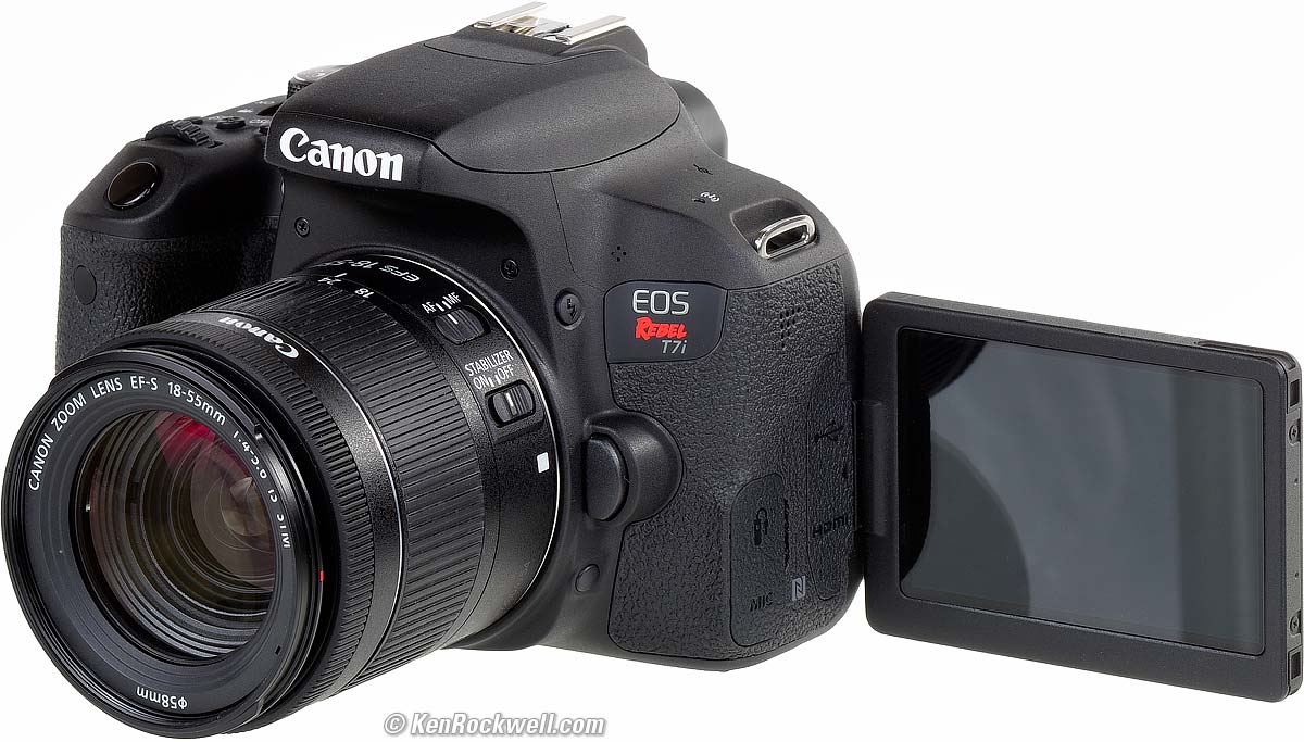 Canon Rebel T7i6 FPS, 24MP APS-C, Touch & Flip LCD, 1,080p StereoIntro Compatibility Specifications Accessories USA Version Performance Compared Usage Recommendations More Canon T7i (EOS 800D outside the USA, 18.7 oz./531g with battery and card, about $500 used if you know How to Win at eBay.) and 18-55mm f/4-5.6 IS STM. bigger. This all-content, junk-free website's biggest source of support is when you use those or any of these links to my personally-approved sources when you get anything, regardless of the country in which you live. Canon does not seal its boxes in any way, so never buy at retail or any other source not on my personally approved list since you'll have no way of knowing if you're missing accessories, getting a defective, damaged, returned, store demo or used camera. Buy only from the approved sources I use myself for the best prices, service, return policies and selection. Thanks for helping me help you! Ken.