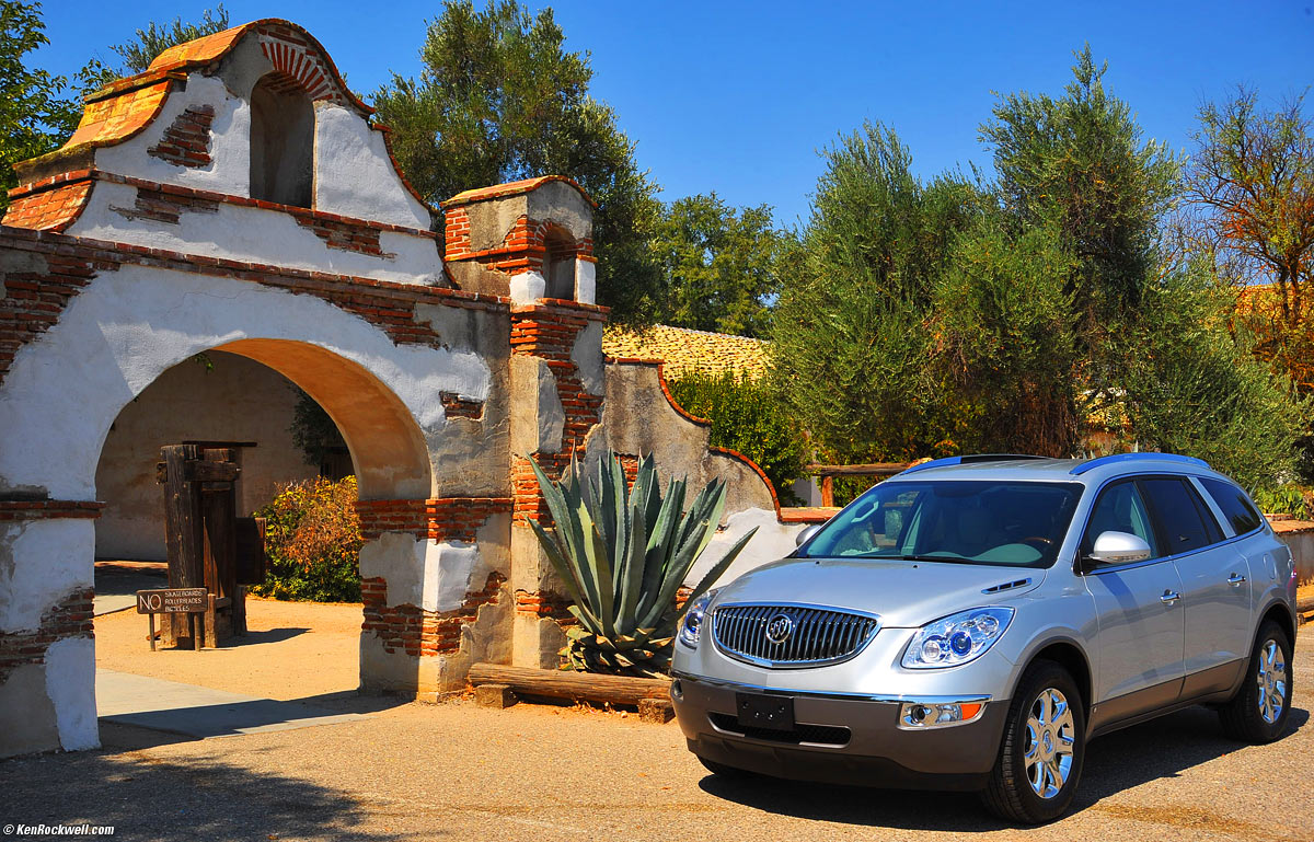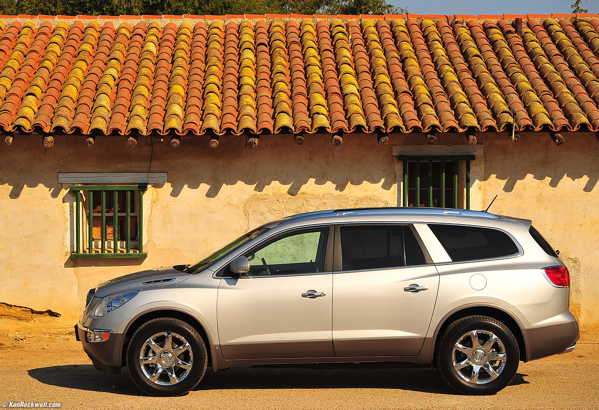 Buick Enclave 2009 Buick Enclave CXL in San Miguel. enlarge. 16 September 2008 More Car Reviews skip to index of Enclave review pages Intro Price Specs Measurements Exterior Materials More Recommendations The 2009 Buick Enclave CXL is the nicest American vehicle I've ever driven. I haven't driven that many American cars, but compared to the Ford Taurus, Dodge Caravans, Chevrolet Cavaliers and Malibus I have driven, the Enclave feels and operates with far more finesse than any of them. The Enclave comes closer to a Mercedes than to those other cars. The Enclave is a giant, quiet and comfy giant minivan or SUV that goes and drives very well. It's so big that I, six feet (180cm) tall, can't see over the top of it. The best things about the Enclave are its quiet ride and incredible ventilated seats that let me drive nonstop for many hours in total comfort. Driving cross-country? Just get in and go; the Buick's comfort won't be what tells you when it's time to pull over. Sitting here writing this review in my big leather office chair, I really miss the ventilated seats of the Enclave. I'm tempted to go out and sit in the Enclave to write this on my laptop computer, just to enjoy the seats! Unlike any other American car I've driven, the Enclave doesn't make all the weird mechanical noises that have me thinking my rental car is about to explode. The Buick wins on finesse, without all the little bothers of lesser vehicles. The Enclave drives very well. It handles smoothly and tracks well, without the wobbly and crappy handling of lesser vehicles, like a Kia Sedona I was once loaned. The Kia drove so poorly and drifted around so much that I always thought I was just about die, while the Enclave drives as a vehicle should. 2009 Buick Enclave CXL. enlarge. The big, fat P255/60 tires on 19" wheels make it comfy, even off pavement. The big tires handle big ruts with ease. I didn't take it off road, but I did have it on some dirt roads, which were comfortable. Speed bumps? No problem! The Enclave flies right over them. I'm always amused when I see people driving macho-man trucks, or even moms driving big pigs of SUVs, who slow down to climb each speed bump as daintily if their big truck is going to break. Even though it's front-wheel drive, the Enclave handles well. Torque-steer (the car pulling the steering wheel in one direction when you hammer the gas) was only felt if I hammered it on uneven pavement from a start and one wheel had different traction than the other. The Enclave has no noisy power steering pumps, shifts smoothly, and has no banging when shifting in and out of Park, Reverse and Drive. It's refined, like a real car. The Enclave doesn't drive like a car because it's not: it drives like an excellent van. It's huge, tall and roomy. Even with just six cylinders, the Enclave has plenty of power for any legitimate need. It will chirp the tires off the line, and the transmission kicks down instantly when you hammer it. It's not fast, but it's more than fast enough for what you ought to be doing in an Enclave. I'm used to fast, quiet cars, but most people who get in an Enclave wind up getting speeding tickets since it's quieter and taller than what they drove before. I had no idea a six could make something this big go this fast. The Enclave's interior is made of the same materials as every other American and Japanese car. I'm not a fan of plastiwood, but the more I drove the Enclave, the more I liked it because the Enclave wins on driving comfort. The Enclave is great for utility use. Its seats fold down and up faster and more easily than any vehicle I've ever driven. The most significant things you'll notice when driving are the huge blind zones to the sides caused by the big, tall mirrors and fat windshield pillars, the poor rear visibility, and the large amounts of glare that shine off the glossy parts of the dashboard. Great on the open road, the Enclave's visibility seems perfect for driving in the canyons of Manhattan, where no one ever looks to the side or behind them and the sun never shines on the dash. The transmission selector falls into my hand, right where it should be. OnStar is superb. It's another reason to consider any GM vehicle. I'd never tried it before. OnStar is both the best navigation system I've ever used, which eliminates the need to buy the expensive optional old-style dedicated navigation system, as well as the best hands-free, button-free phone I've ever used. At least in Southern California, the Enclave is a rare vehicle. In the one week and 800 miles I had it, I saw innumerable Mercedes, BMWs, Porsches and Masaeratii, three Rolls-Royces, two Ferraris and a London double-decker bus, but only one other Enclave. That's 95% of my review. There are a lot of pages that follow, but they are just details. I've just given you the important part. Consumer Reports says that "the Enclave, Acadia, and Outlook are among the best SUVs in their class" on page 48 of their October 2008 issue. Read on if you need to know more, but that about wraps up the important items. The Buick Enclave at The Gates of San Miguel. enlarge. Minivan, car, truck, van, SUV, station wagon, MPV or what? The federal sticker on the door jamb classifies the Enclave as an MPV, whatever that is. I consider all tall, boxy front-wheel-drive, unibody vehicles as minivans, and therefore I classify the Enclave as a minivan. I also consider the Porsche Cayenne Turbo S and Mercedes R-Klasse as minivans. For something to be called an SUV, it needs a real element of sport, not just sporty styling. In the case of an SUV, it would need either on-track motorsports or off-road ability to earn the "S" of the SUV moniker. Formally, an SUV is a body-on-frame (truck-based) vehicle and must have all-wheel or 4-wheel drive. The rear storage area of an SUV is a storage area for outdoor sports and survival gear, not the third row seat of people carriers (vans). Many suburban housewives dislike the word "minivan," and prefer t