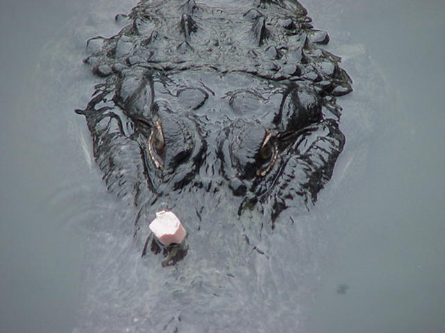 Hot Dog on Nose of Gator
