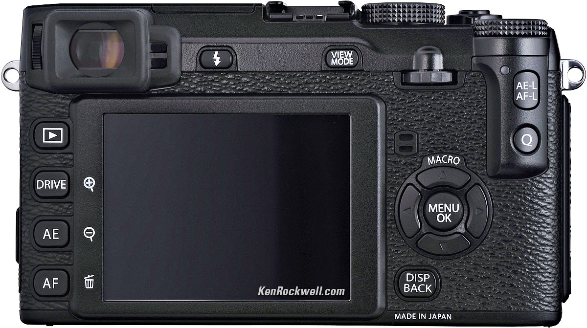 Electronic viewfinder 0.5" 2,360,000-dot color OLED. (X-Pro1 is only a 1,440,000-dot color LCD.) 25º apparent angle. 100% coverage. Eye sensor. 23 mm eye point.