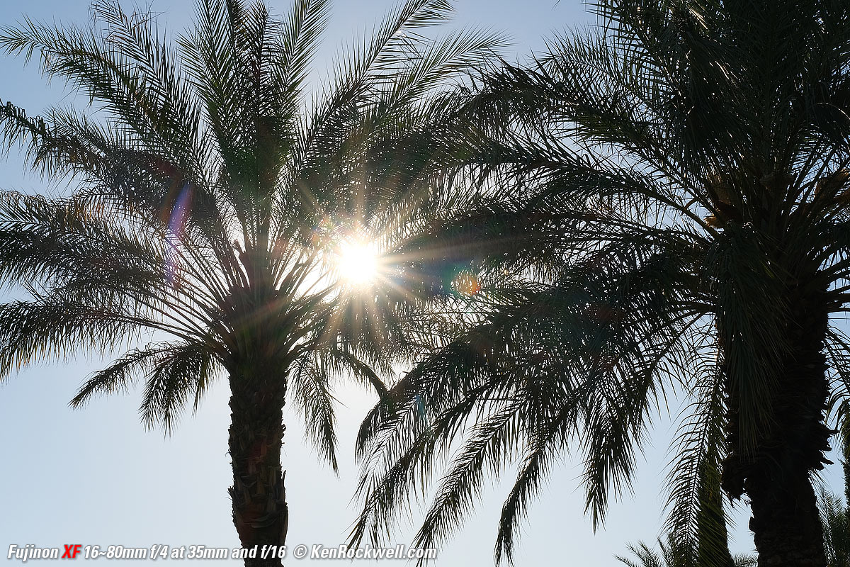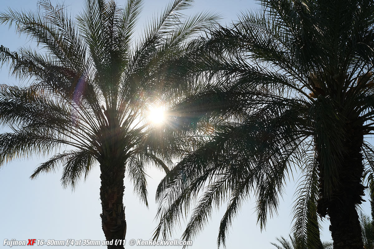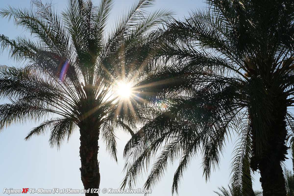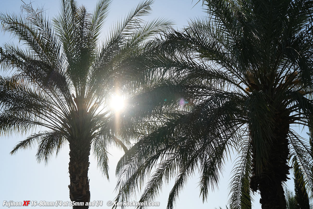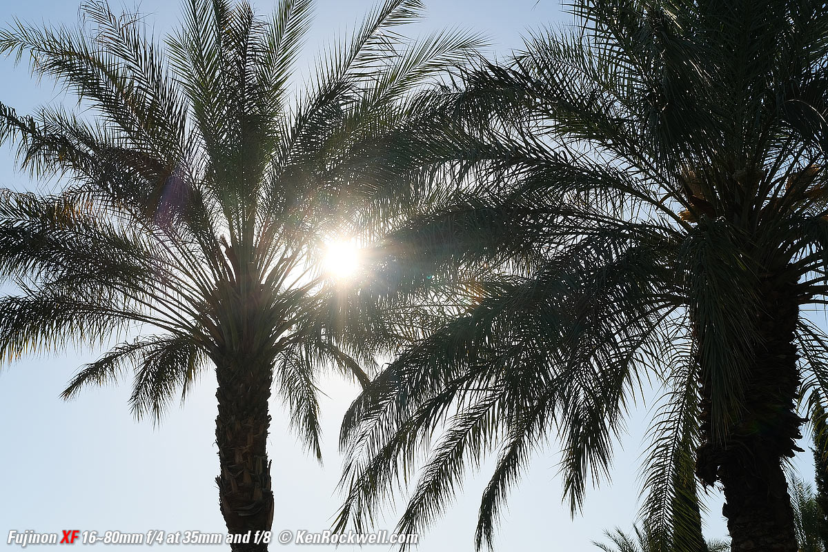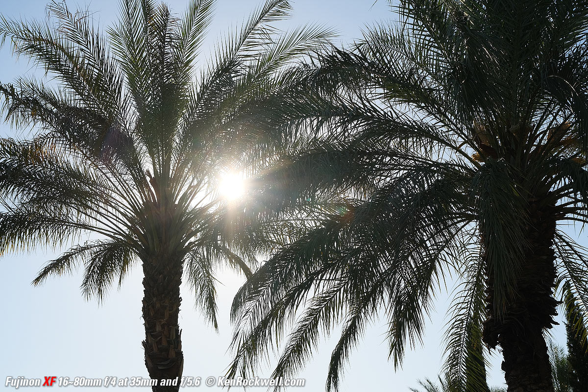Palm Desert Palms, 7:10 PM, 22 April 2020. Fuji X-T30, Fuji XF 16-80mm f/4 at 80mm at f/6.4 at 1/1,400 at Auto ISO 320 (LV 14.2), Auto Dynamic Range chose 200%, as-shot. bigger or camera-original © JPG file.