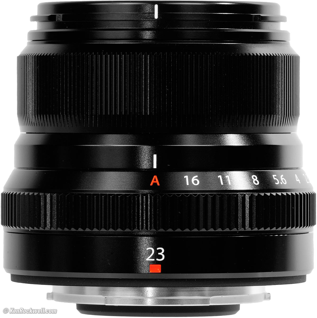 ErgonomicsFujifilm 23mm f/2. bigger. The manual focus ring only works half the time, but that's how it's designed. The aperture ring is big and overdamped. It's easy to move with a fingertip. It has third-stop detents but no deeper detents at full stops. It has no ring lock at "A," so it's easy to knock one click from A and be shooting at f/16 all night.