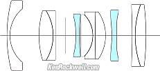 OpticsFujinon 23mm f/2 internal optical construction. Aspherical element. 10 elements in 6 groups. Two Aspherical elements.