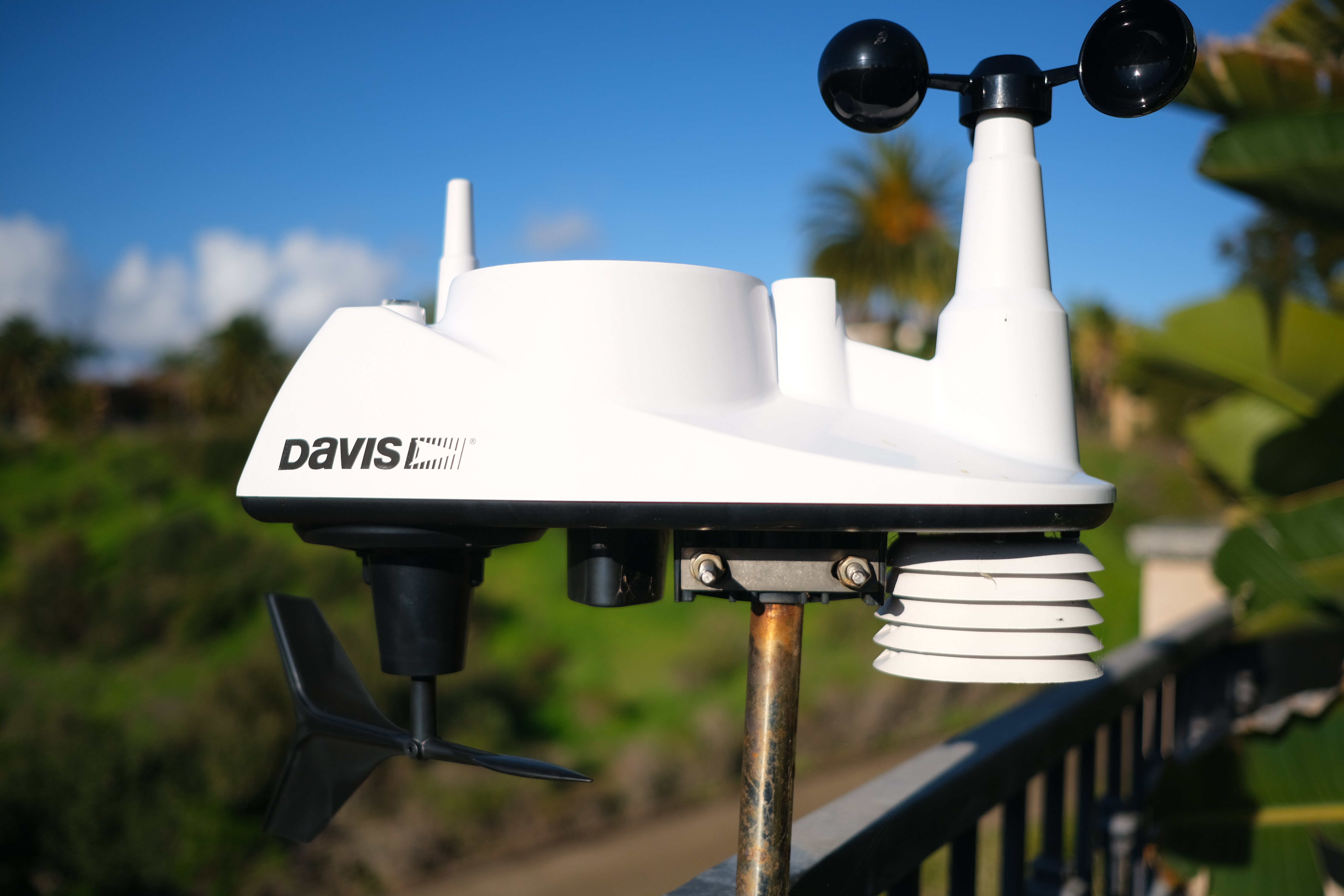 BokehBokeh, the feel or quality of out-of-focus areas as opposed to how far out of focus they are, is beautiful. Backgrounds melt away if you're far enough out of focus: Davis 6250 weather station, 16 February 2019. Fujifilm X-T3, Fujinon 23mm f/2 wide-open at f/2 at 1/4,000 at ISO 160, Perfectly Clear. bigger or camera-original © JPG file As always, if you want to throw the background as far out of focus as possible, shoot at f/2 and get as close as possible. This lens is wide enough that things don't get that far out of focus; the amount of defocus varies more with focal length than aperture; longer lenses throw backgrounds much farther out of focus.