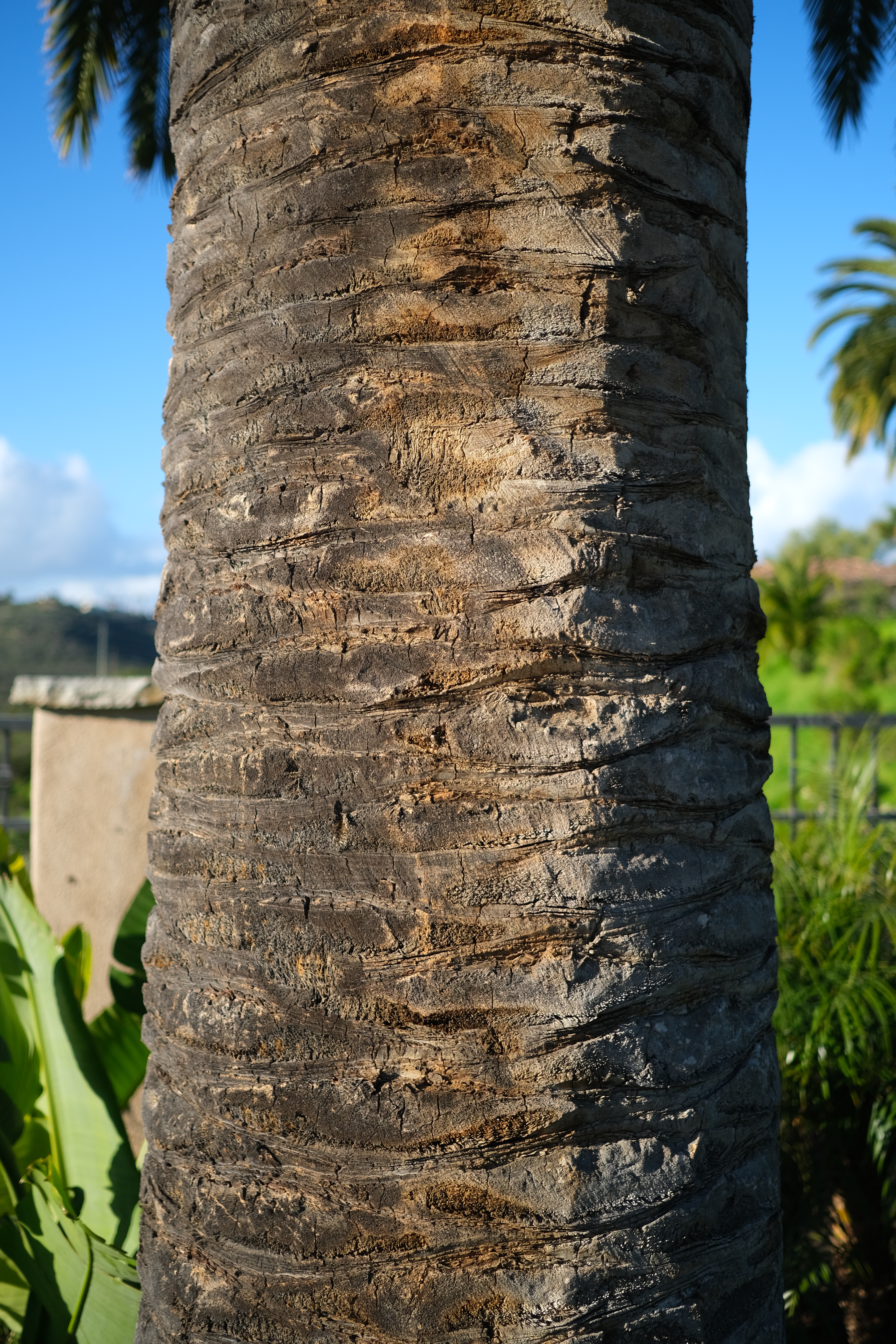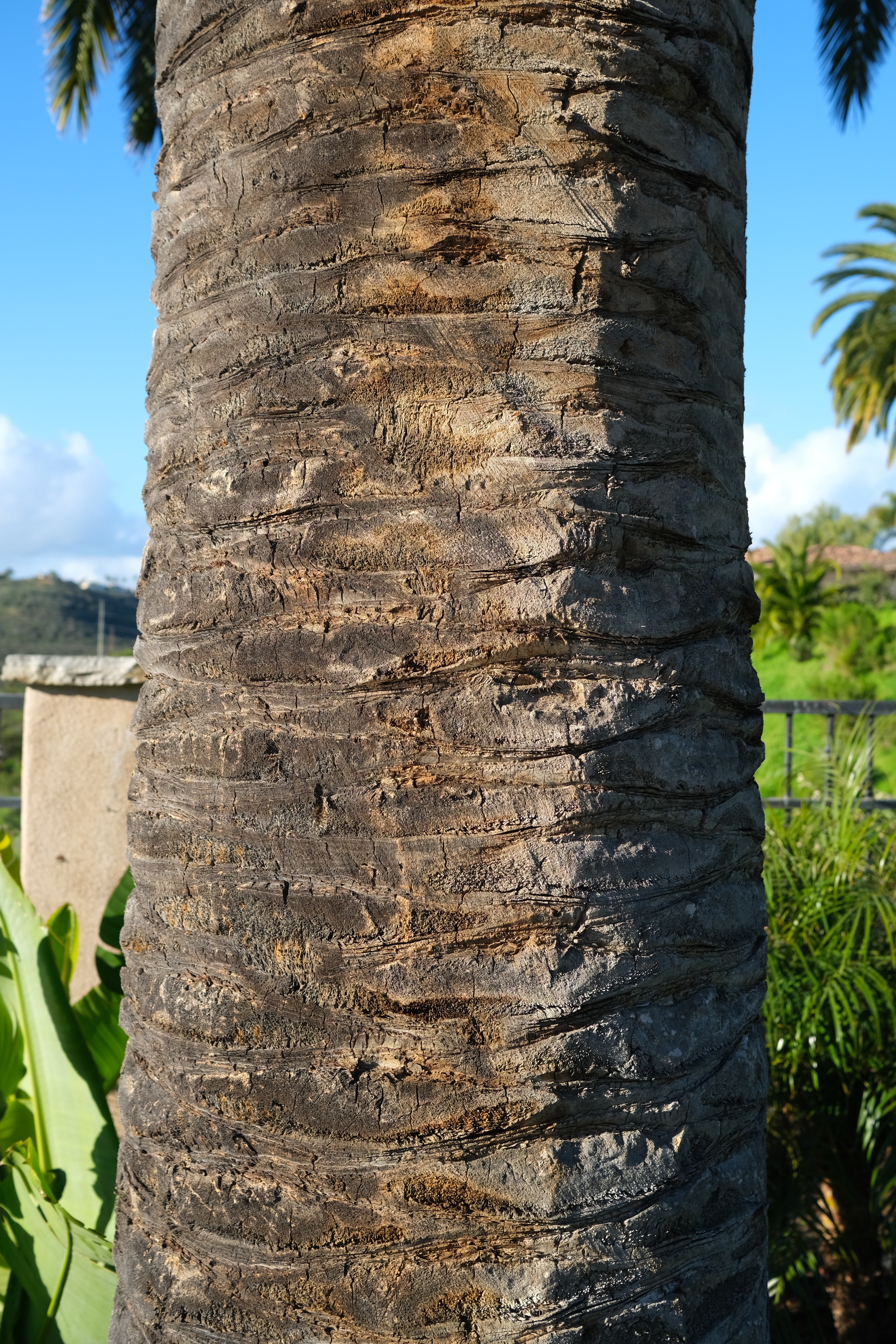 Canary Palm Trunk, 16 February 2019. Fujifilm X-T3, Fujinon 23mm f/2 at f/5 at 1/340 at Auto ISO 160. bigger or camera-original © JPG file.