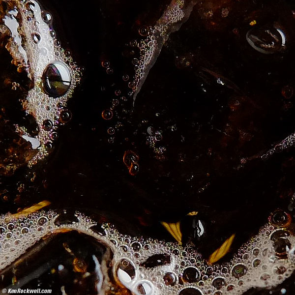 Macro performance top As you'll see in the image and original file above, there is a tiny bit of distortion and it's a little softer at the sides at f/1.4, but LEICA lenses don't focus anywhere near this close. Root Beer. f/4 at 1/160 on X-Pro1 at AUTO ISO 800. Great bokeh, and look how sharp it is at 100%: Crop from above image in 50 x 33" (1.5 x 1m) print (100% pixel-to-pixel). The XF 35/1.4 is so sharp, and depth-of-field is so thin at macro distances, that the ice just a few millimeters closer is obviously out of focus.