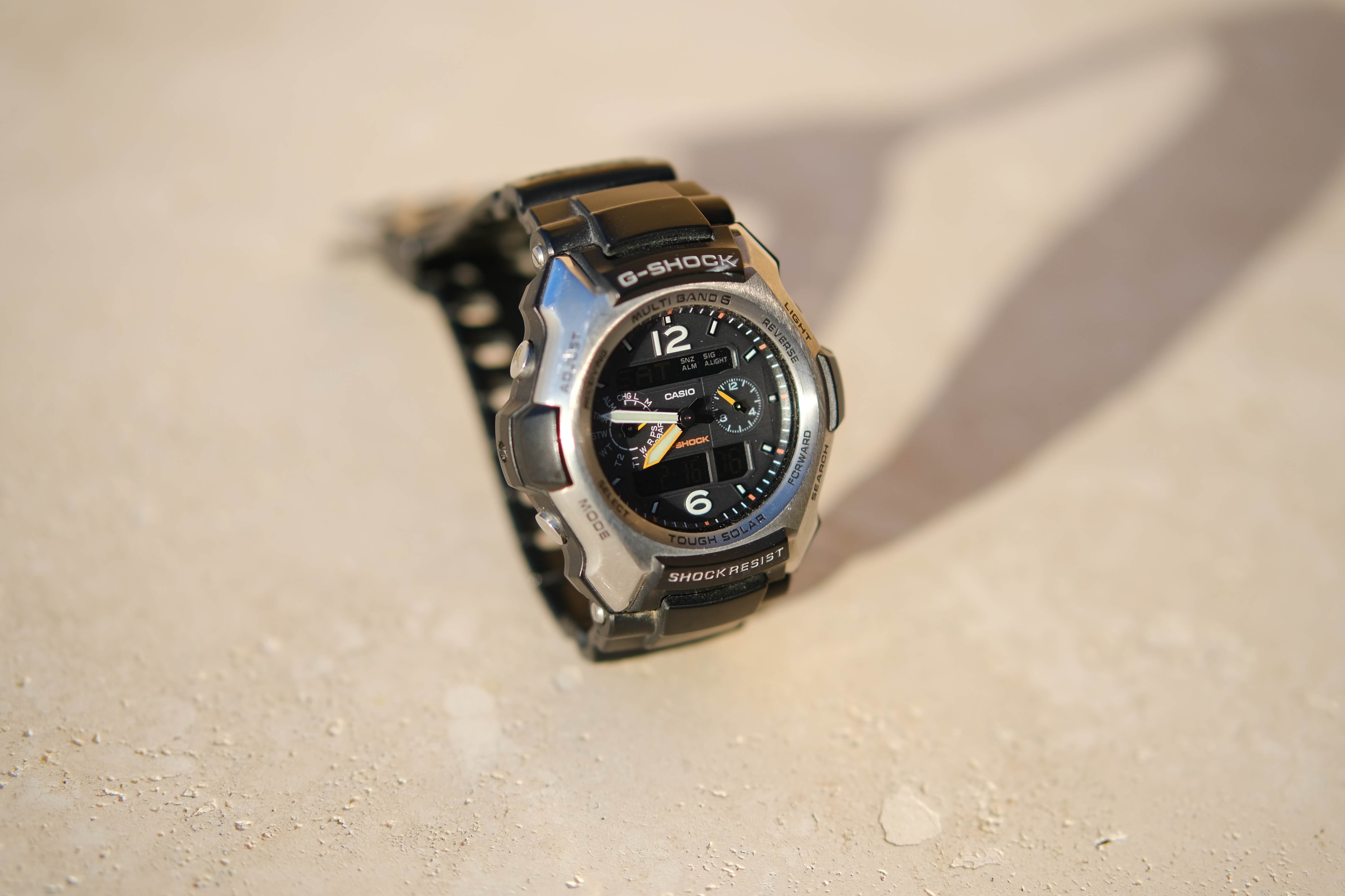 And it's also very sharp wide-open at f/2 where many lenses get softer at macro distances. This is better than average performance: Casio G-Shock Solar Atomic Watch photographed wide-open at f/2 at close-focus distance, 16 February 2019. bigger or camera-original © file.