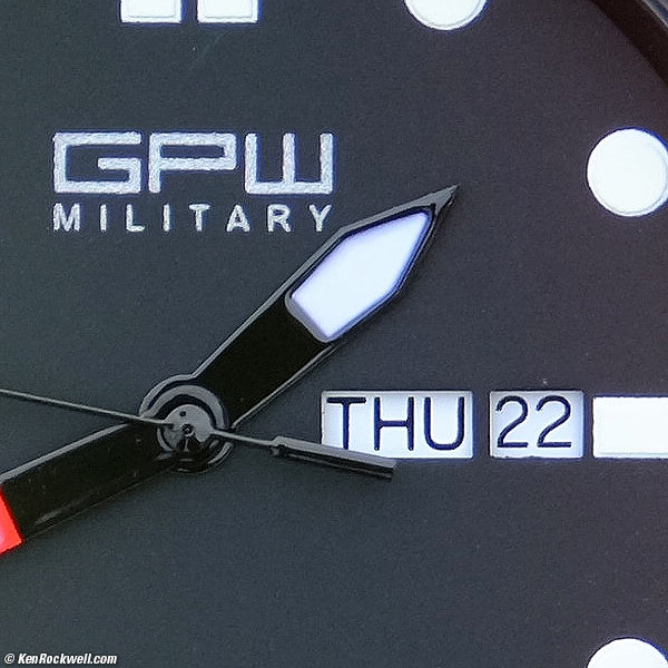 Crop from above 16MP image at 100%. If this is 6" (15cm) wide on your screen, the entire image printed at this high magnification would be 50 x 35" (1.5 x 1 meter). Not only does it get close, it's sharp! You can see the texture of the painted GPW mark.