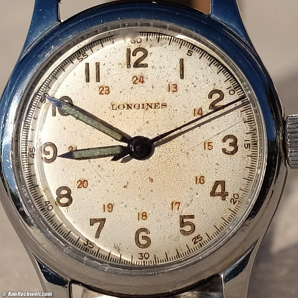 Crop from above image at 100%. If this is about 6" (15cm) on your screen, printing the complete image at this same high magnification would result in a 50 x 30" (125 x 85 cm) print! This is a 60-year-old wristwatch.