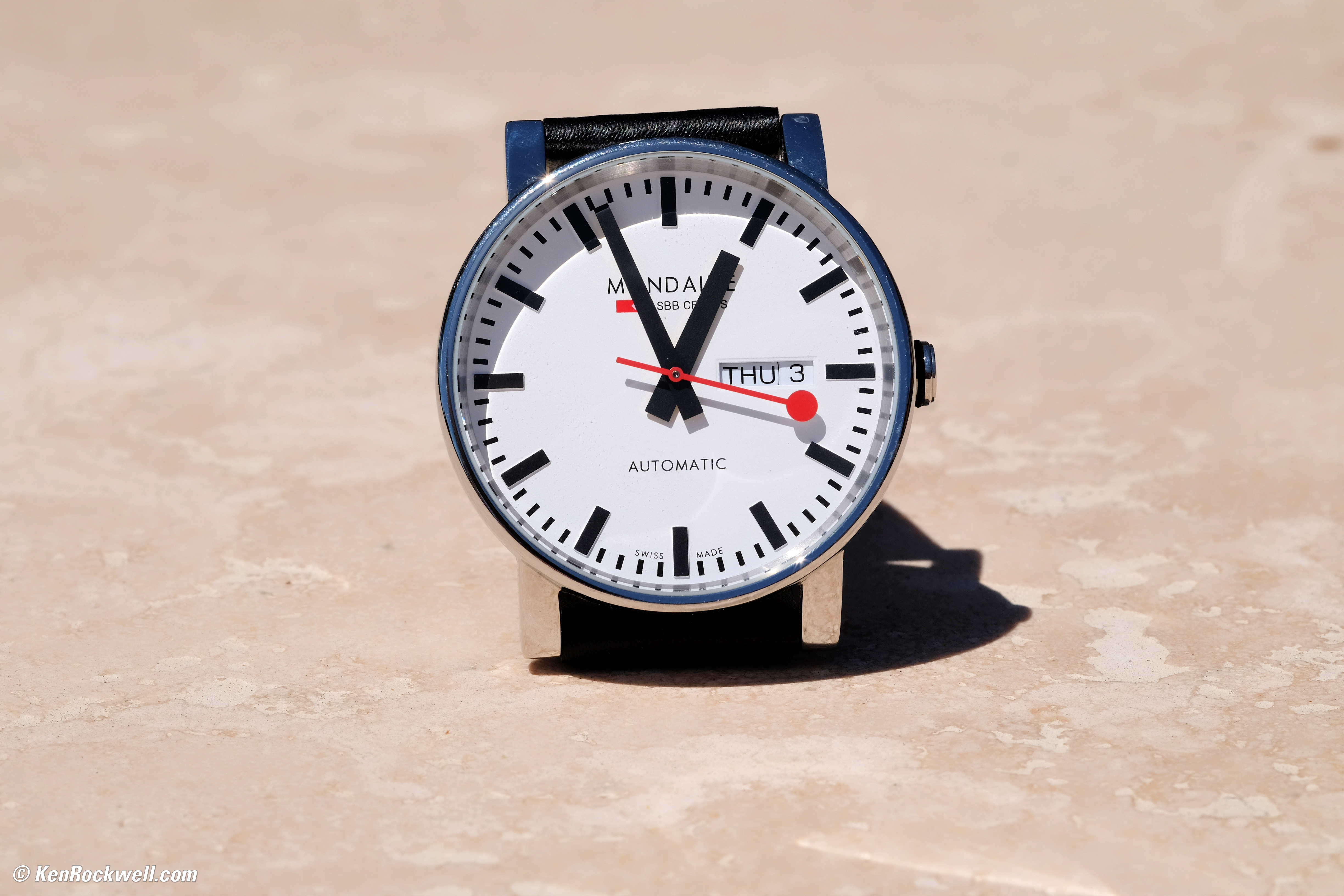 Macro performance top It gets very close: Mondaine A132.30348.11SBB at close-focus distance at f/14. bigger or full-resolution.
