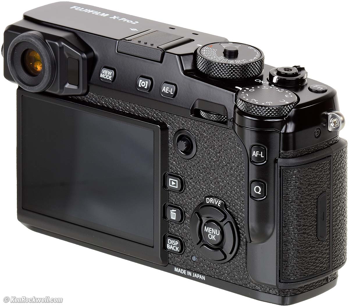 Missing● No flash. ● No GPS. ● Auto ISO can't be programmed for minimum shutter speed to track lens focal length; has manual slowest-speed settings only. ● No real preset modes; the "Custom Settings" only store and recall a very limited subset of parameters. ● No touch screen. ● No RGB histogram, but not needed because the X-Pro2 does so well at handing highlight overload. ● Only a one-axis level for roll ("Dutching" or left-right tilt); no second axis for pitch (up-down). ● No deeper zero detent on the exposure compensation dial makes it impossible to find Zero quickly by feel. ● Tiny exposure compensation display in the finder means you could shoot an hour before you realize you're at +1 stop from last night. ● No battery percentage in finder, just a bar. (You can see percentage on the rear LCD.) ● Charges only by taking battery out and putting in a separate charger; can't charge via USB.