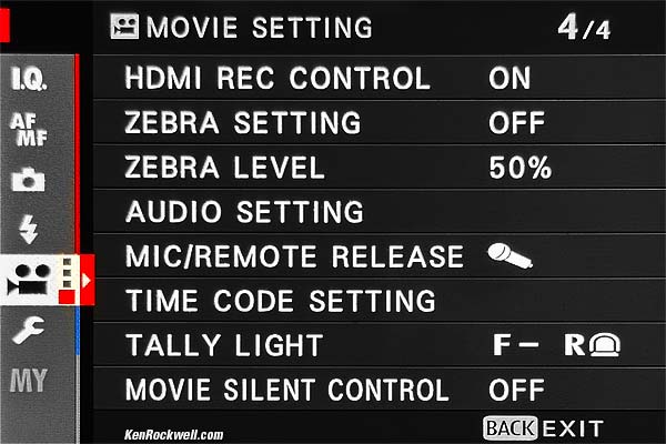 Fuji X-T30 Menu Tabs. Click any to enlarge. All are actual photos of the rear LCD shown here at lower resolution. These are devoid of color, so it's nearly impossible to have any clue where to find an item the next time we need it. Fuji's menus are the worst in the industry, disorgnainzed and with cryptic names. This is the weakest thing about Fuji's cameras. It's a bear trudging through all the menus, sorry. You can't hit MENU again to get out of the menus to shoot, press the shutter or hit the BACK (not MENU) button. MENU always starts back at the top, unless you have a MY MENU set at MENU > WRENCH > USER > MY MENU > ADD.