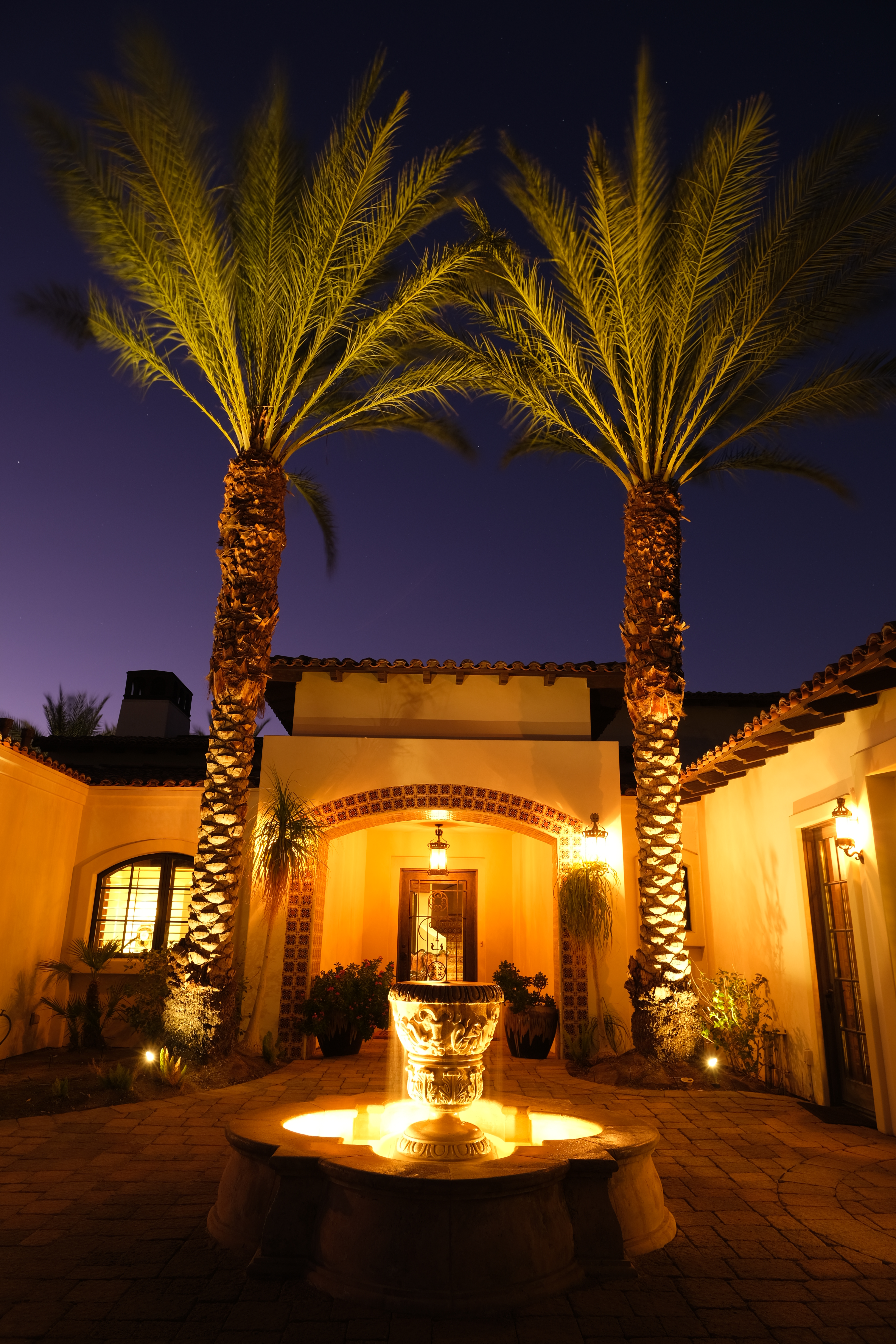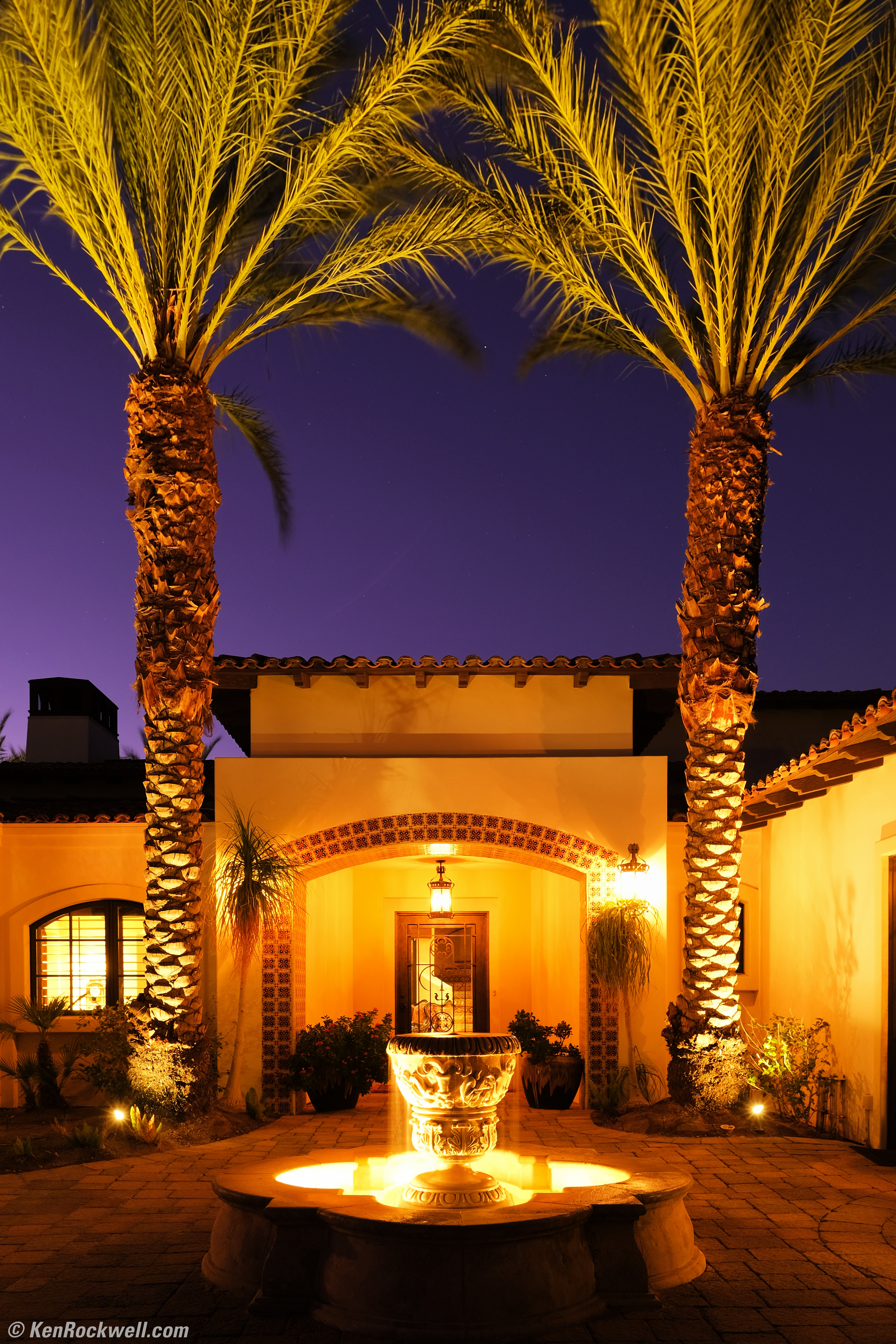 Fountain,The Hideaway, La Quinta, California, 6:23 PM, 26 October 2020. Fuji X-T30, Fuji XF 50mm f/1 at f/1 at 1/8 at ISO 160 (LV 2.3), Perfectly Clear. bigger, full resolution or camera-original © JPG file.