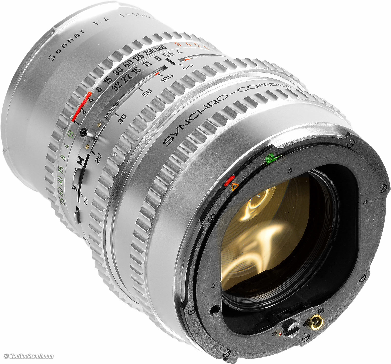 MechanicsHasselblad Zeiss Sonnar 150mm f/4. bigger. Lenses don't get any better than this. The Hasselblad Zeiss Sonnar 250 4 C shown here is solid chromed brass. See the fine milling marks on the barrels? This lens is lathe-turned brass! Newer models add more plastic and skimp by painting some markings that should be engraved.