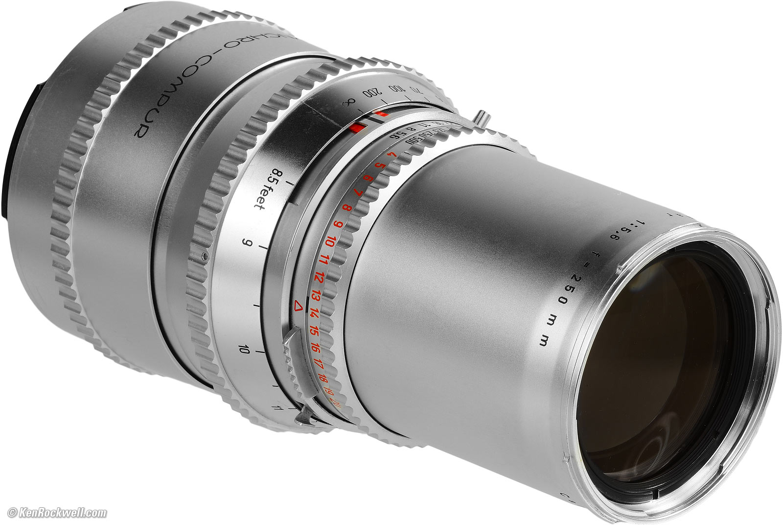 Zeiss Sonnar 250mm f/5.6 C (fits Hasselblad V system, this sample from 1972, B50 filters (later B60), 32.8 oz./929g (later 35.3 oz./1,000g), 8.2'/2.5m close focus, about $150 ~ $800 used if you know How to Win at eBay.) bigger. I got this one at this link directly to them at eBay, and it cost me only $148. They're also at Amazon. Never buy at a retail store or other dealers; you'll pay way too much and have very limited options if you don't like it. This all-content, junk-free website's biggest source of support is when you use those or any of these links to my personally-approved sources when you get anything, regardless of the country in which you live. Use only the approved sources I use myself for the best prices, service, return policies and selection. Thanks for helping me help you! Ken.