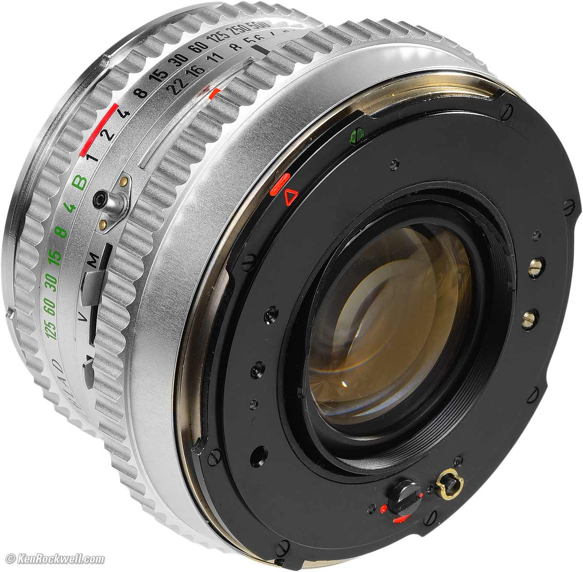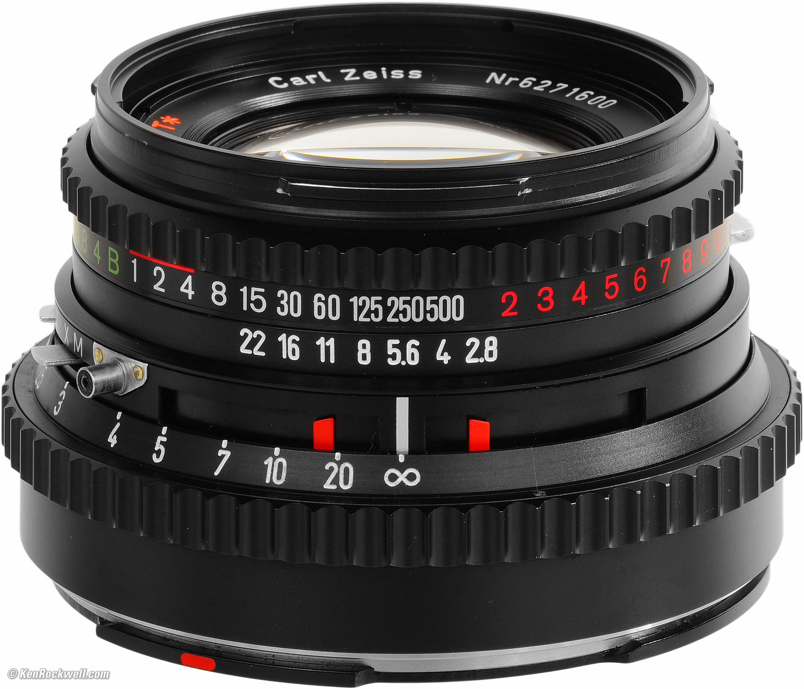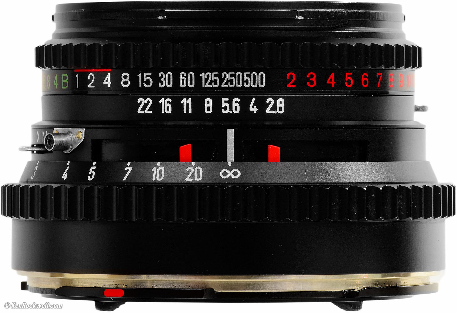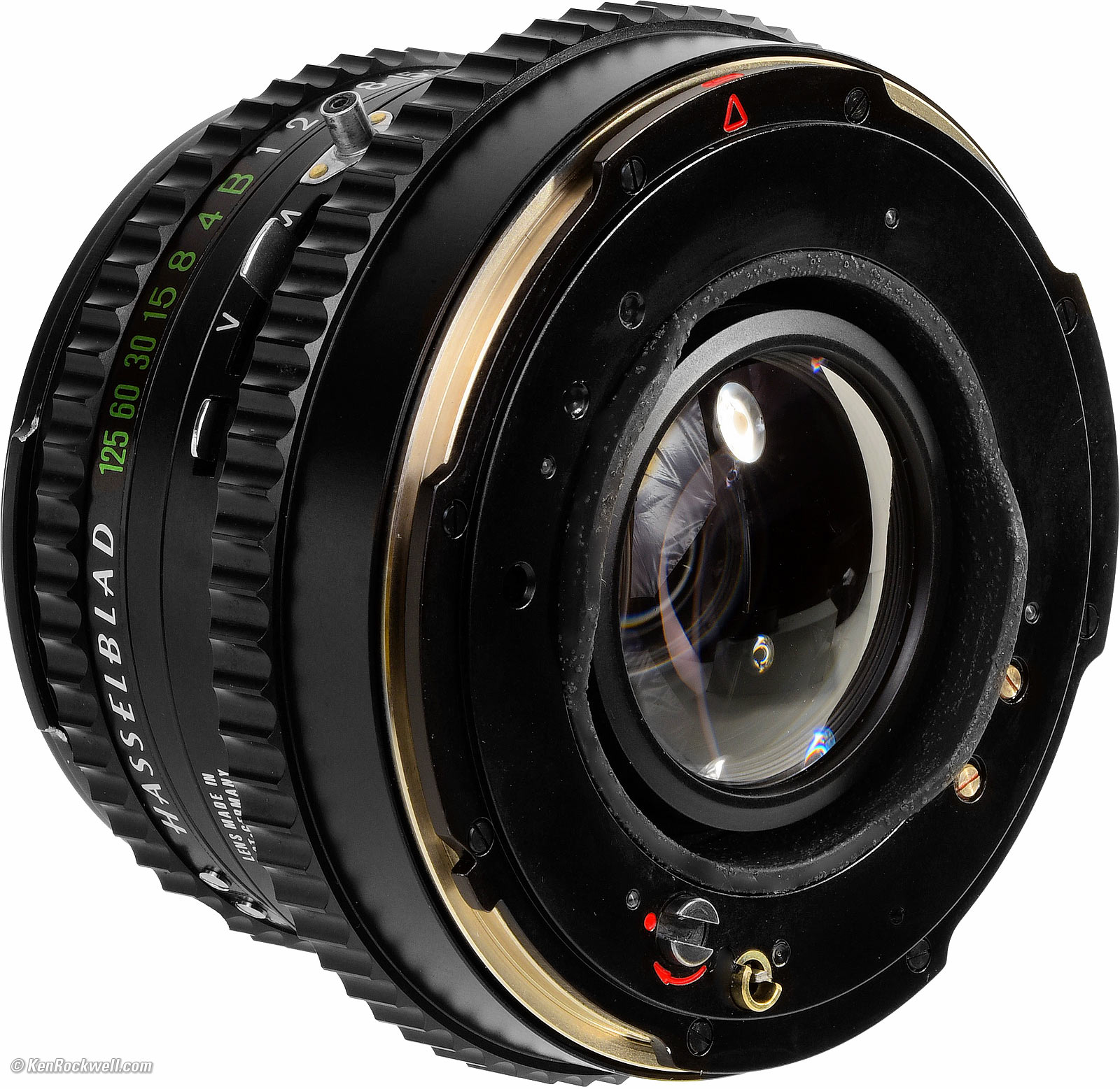 MarkingsEngraved and filled with paint, except for printed shutter speed and EVS scale and sync indications. Everything else, even "LENS MADE IN WEST GERMANY," is all engraved to last for centuries.