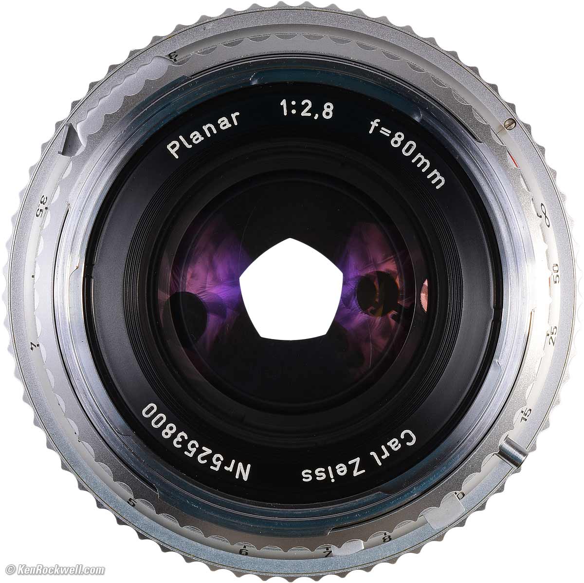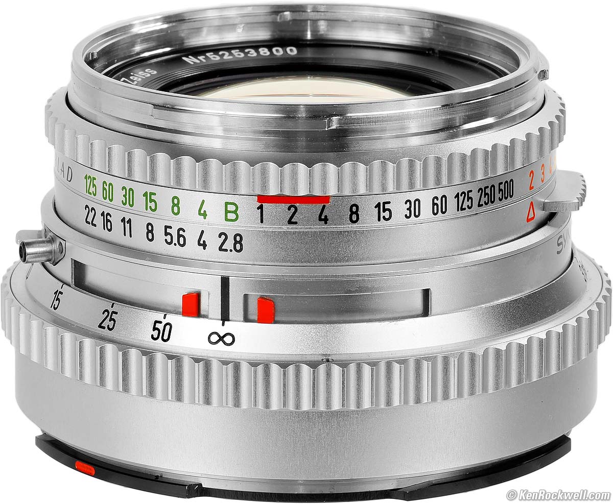 ZEISS PLANAR T✻ 80mm f/2.8 C (fits HASSELBLAD V system, this sample made in 1980, B50 bayonet filters, 15.2 oz./430g, 3'/0.9m close focus, about $725 used if you know How to Win at eBay.) bigger. I got this one at this link directly to them at eBay. Never buy at a retail store or other dealers; you'll pay way too much and have very limited options if you don't like it. This all-content, junk-free website's biggest source of support is when you use those or any of these links to my personally-approved sources when you get anything, regardless of the country in which you live. Use only the approved sources I use myself for the best prices, service, return policies and selection. Thanks for helping me help you! Ken.
