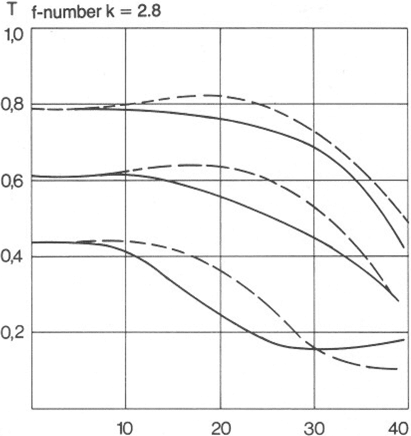Optics specifications topZEISS PLANAR 80mm f/2.8 internal construction. 7 elements in 5 groups. No aspherical, plastic or ED elements: just great, highly homogenous glass crafted into lenses with extraordinary precision and uniformity. Dr. Ludwig Bertele's original, simpler PLANAR design dates to 1931 as a 50mm f/2. In 1932 a 50mm f/1.5 design came out, and it's still sold today by ZEISS. It was a very simple design with few air-to-glass surfaces which made high-speed lenses a reality back before anti-reflection coatings were invented in World War Two. PLANAR is a trademark of ZEISS. It no longer refers to a particular optical design and instead is used to denote fast normal lenses. This lens uses a completely different and more complex symmetrical double-GAUSS design from 1957, with more elements and air-glass surfaces than the 1931 PLANARs. The first versions of this 1957 design are single coated mostly in blue, and most later versions are multicoated, which Zeiss brands as T*. Actual focal length: 80.5 mm. Flange focal distance (common to all lenses for this system): 74.90 mm.