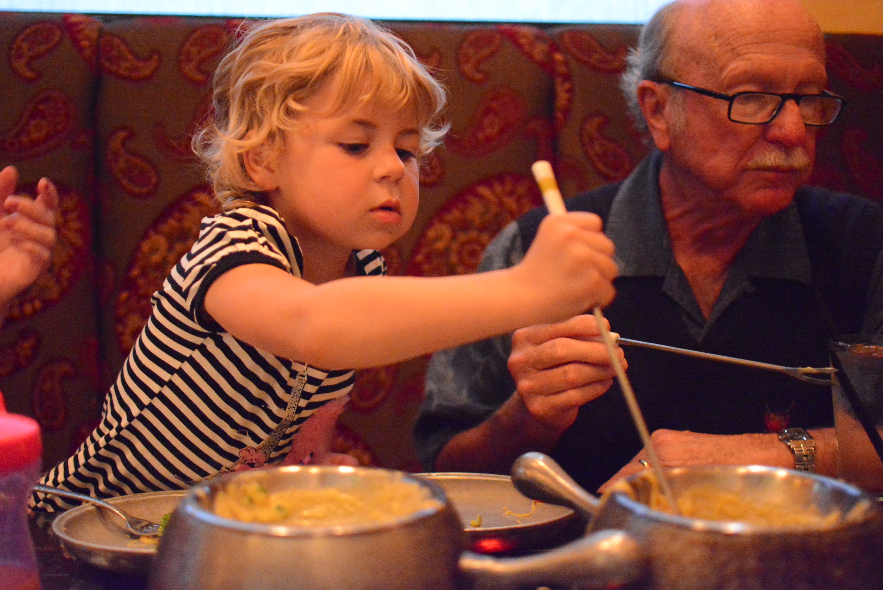 Katie loves the Fun-Do (Fondue) restaurant! (Nikon D7100, Nikon 35mm f/1.8 DX, AUTO ISO 12,800, f/1.8 at 1/60, AUTO white balance with A2 adjustment, STANDARD Picture Control with +1 Saturation and 7 Sharpening, Athentech Perfectly Clear plug-in.) © Camera-Original BASIC SMALL JPG.