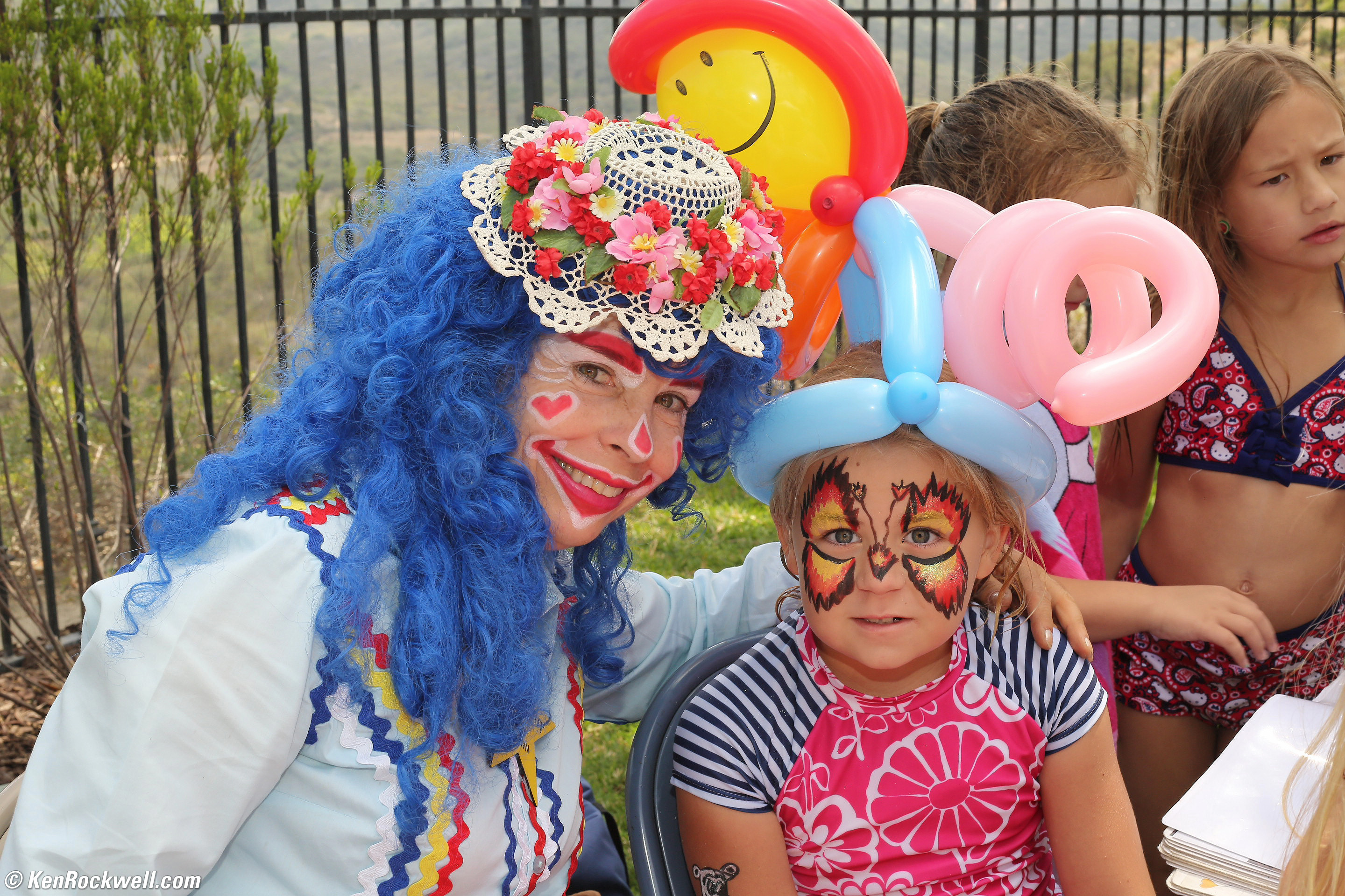 Katie and Free Spirit the Clown. (Canon 5D Mk III, Canon 320 EX flash, Canon 50mm f/1.8 STM,1/200 at f/13 at Auto ISO 400, Perfectly Clear V2.) Full-resolution.