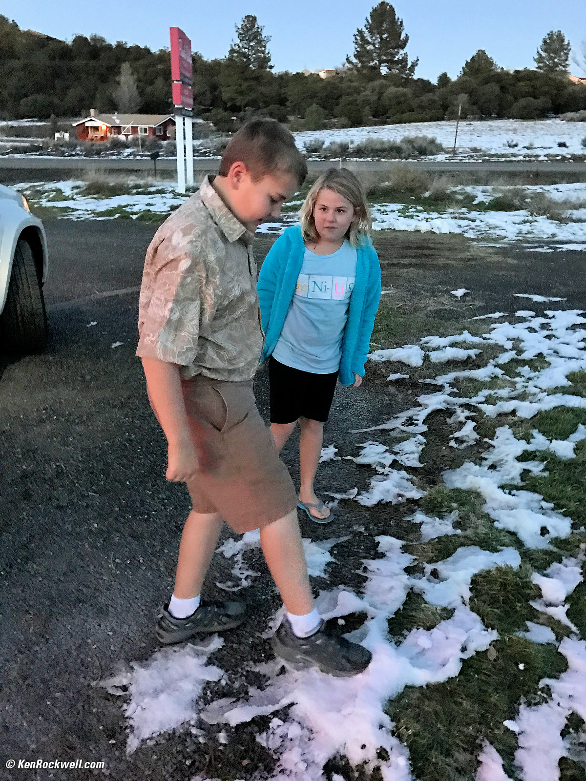 Family viewing the eclipse, 10:33 AM. iPhone 6S Plus at 4.2mm at f/2.2 at 1/615 at Auto ISO 25, Perfectly Clear. bigger. Little did I realize that Ryan's the only one who wears socks in this family!