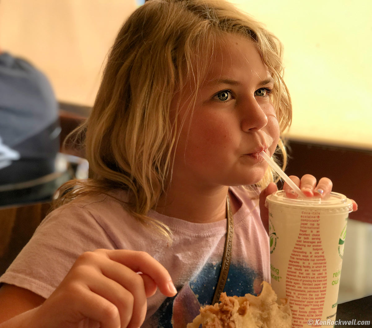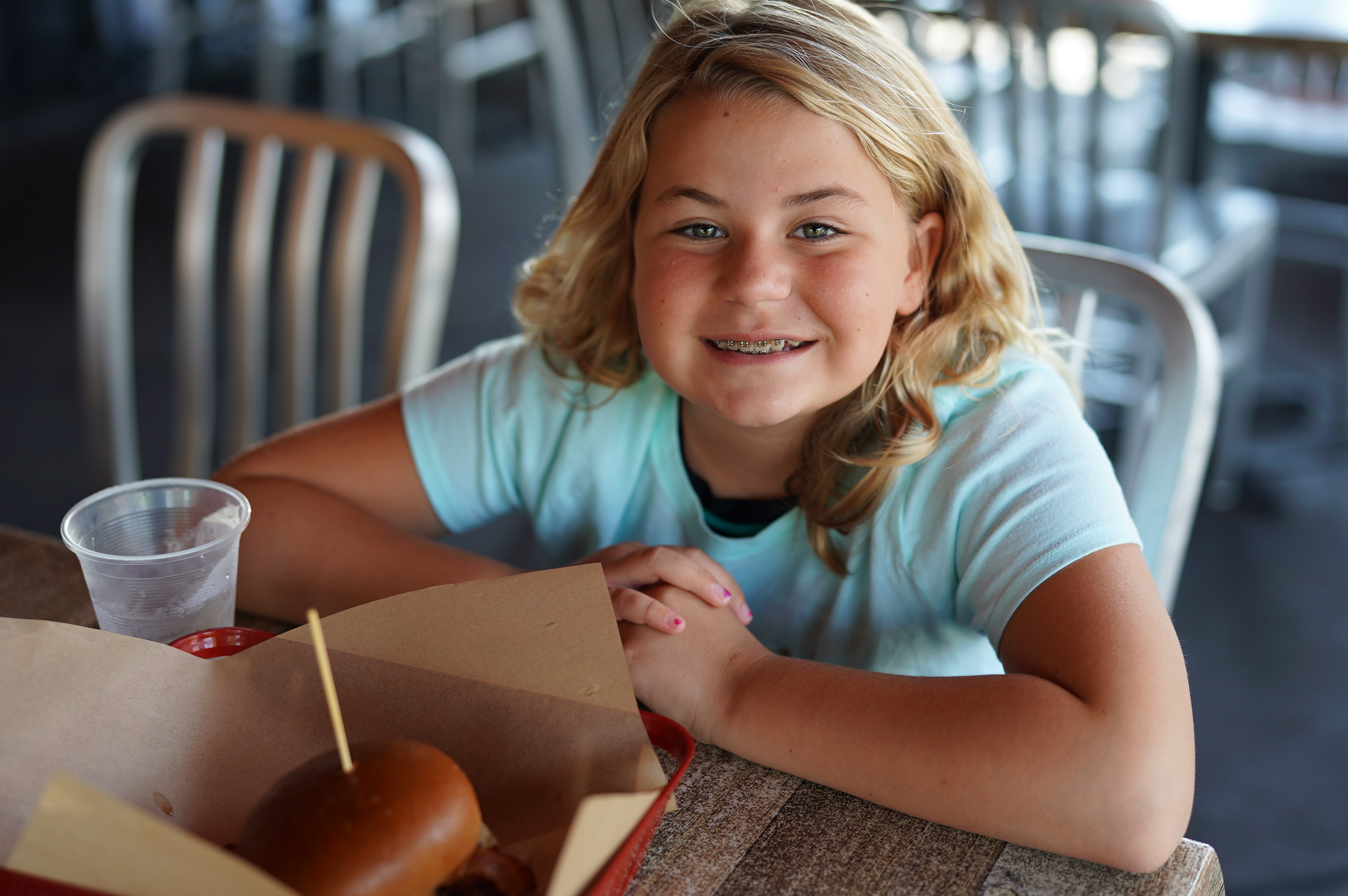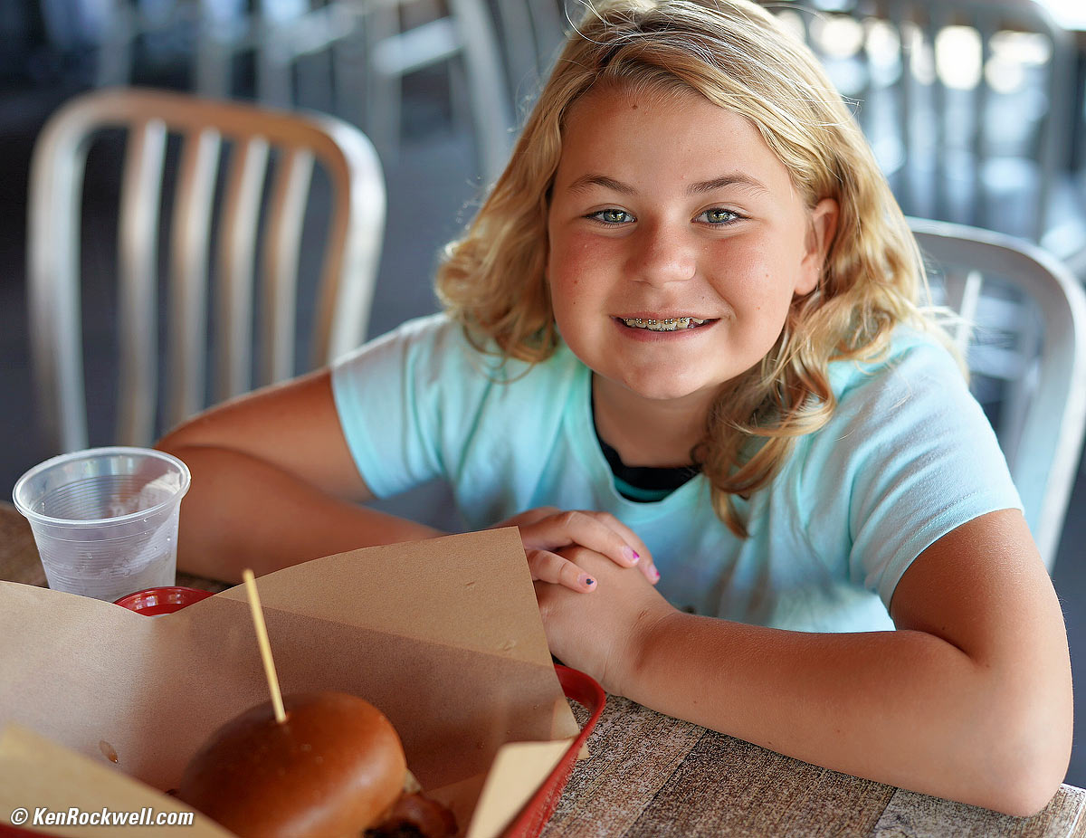 Katie at Lunch. Sony A9, Sony Zeiss FE 50mm f/1.4 at f/1.8 at 1/125 at Auto ISO 100, Perfectly Clear. bigger, full-resolution or camera-original © file.