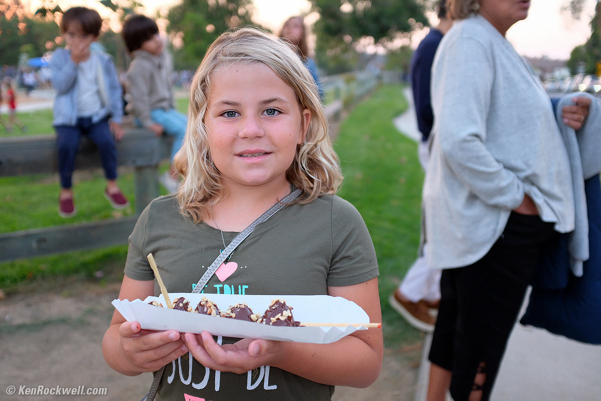 Katie and her glow stick at night. Sony A9, Sony 24-240mm at 39mm wide-open at f/4 at 1/80 at Auto ISO 25,600, Perfectly Clear. bigger.