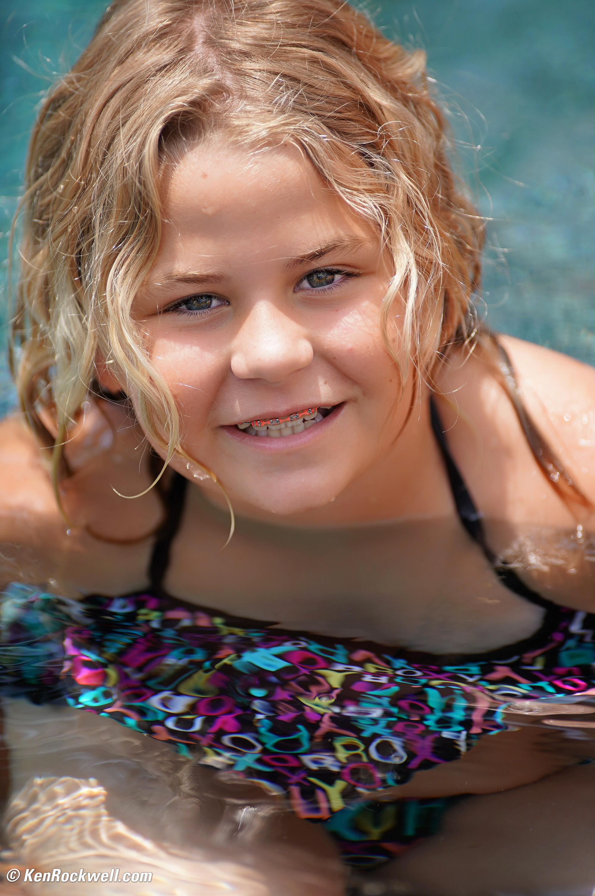 Katie in the pool. Sony A9 with Canon 300mm f/2.8 L on Metabones Mark V adapter at f/2.8 at 1/1,250 at Auto ISO 100. bigger.