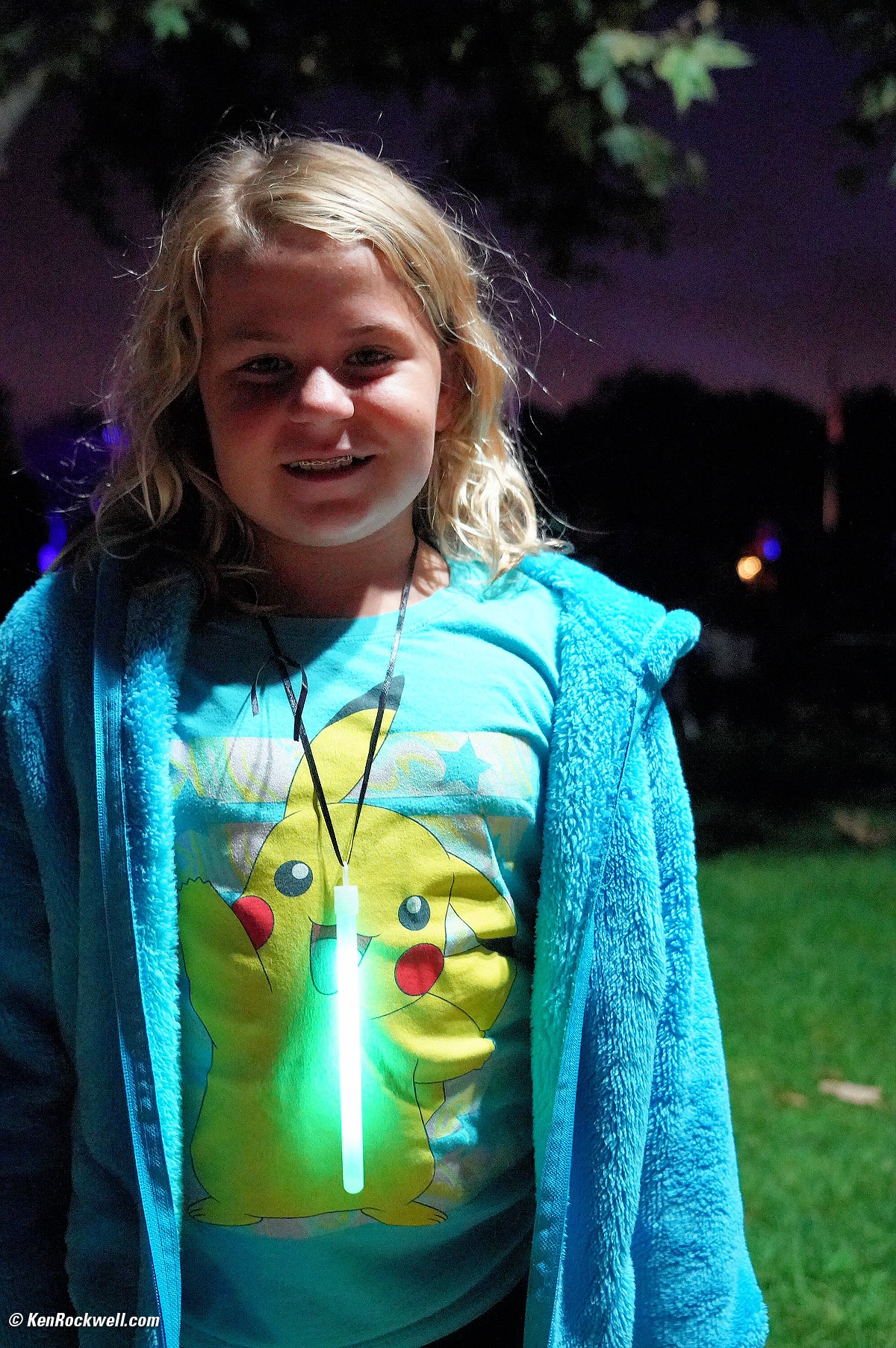 Katie gets a glow stick. Sony A9, Sony 24-240mm at 24mm wide-open at f/3.5 at 1/80 at Auto ISO 25,600, Perfectly Clear. bigger.