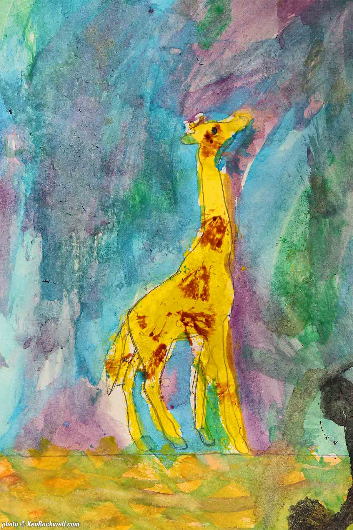 Katie's griaffe painting, made today at Critter Camp. Canon SL2, Canon 18-55mm f/4-5.6 STM IS at 55mm at f/11 at 1/320 at Auto ISO 100, Perfectly Clear. bigger.