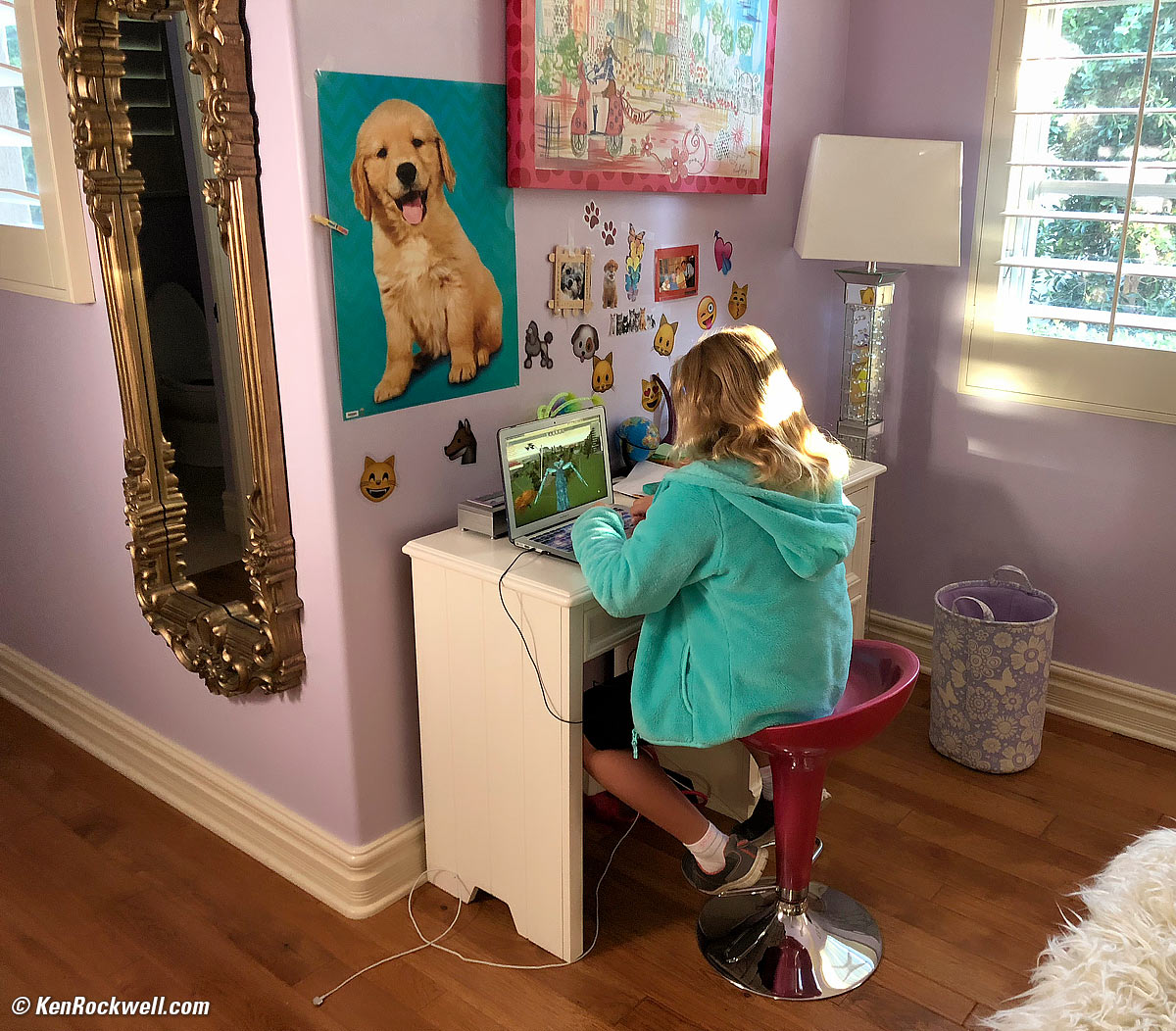 01 October 2017, Sunday Katie and her MacBook Air. She's playing a fox game on Roblox. Nikon D850, Nikon AF MICRO-NIKKOR 55mm f/2.8 at f/2.8 at 1/125 at Auto ISO 1,600, Perfectly Clear. bigger or full-resolution file to explore on your computer (mobile devices rarely can display the full resolution files properly).