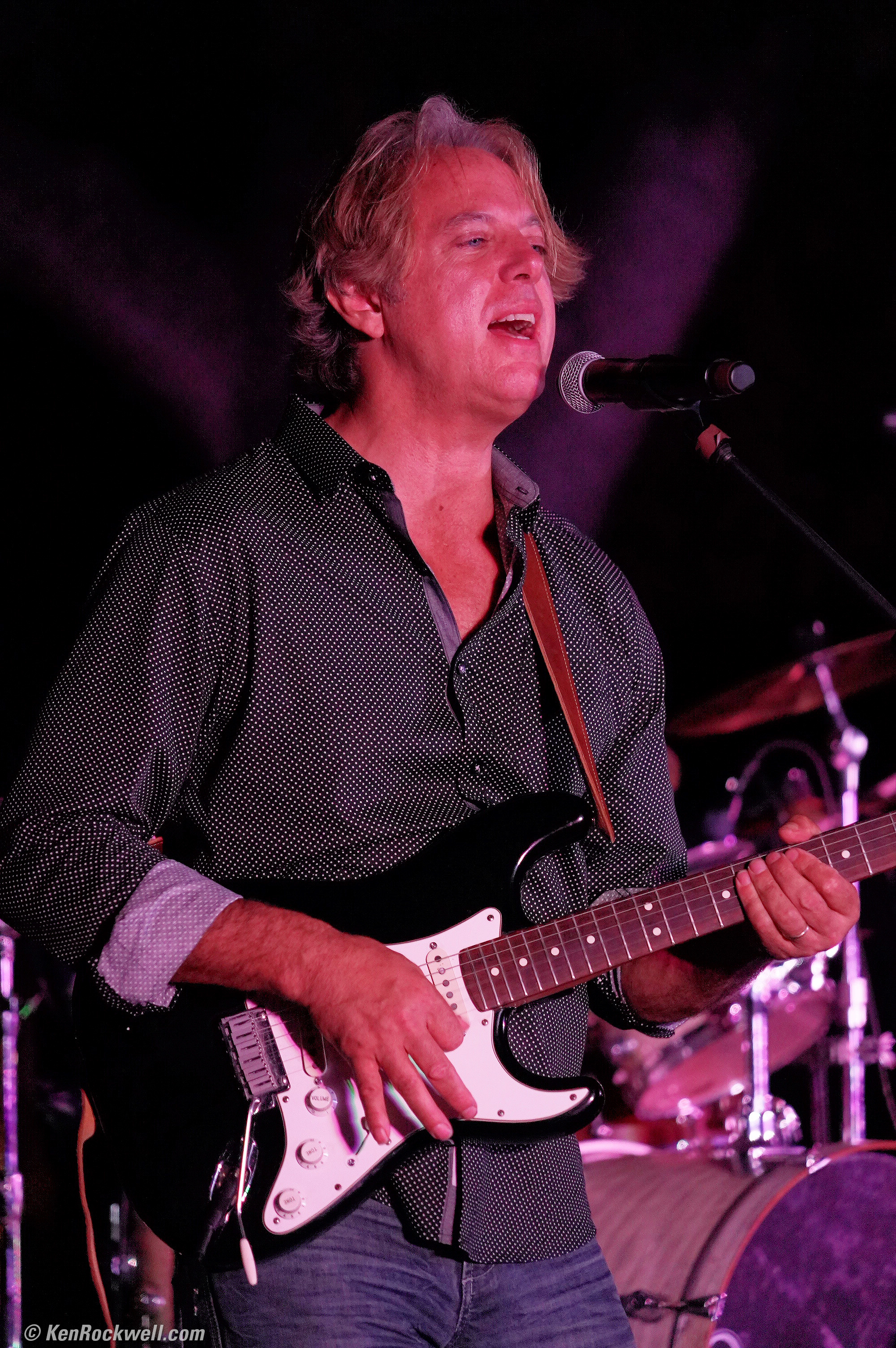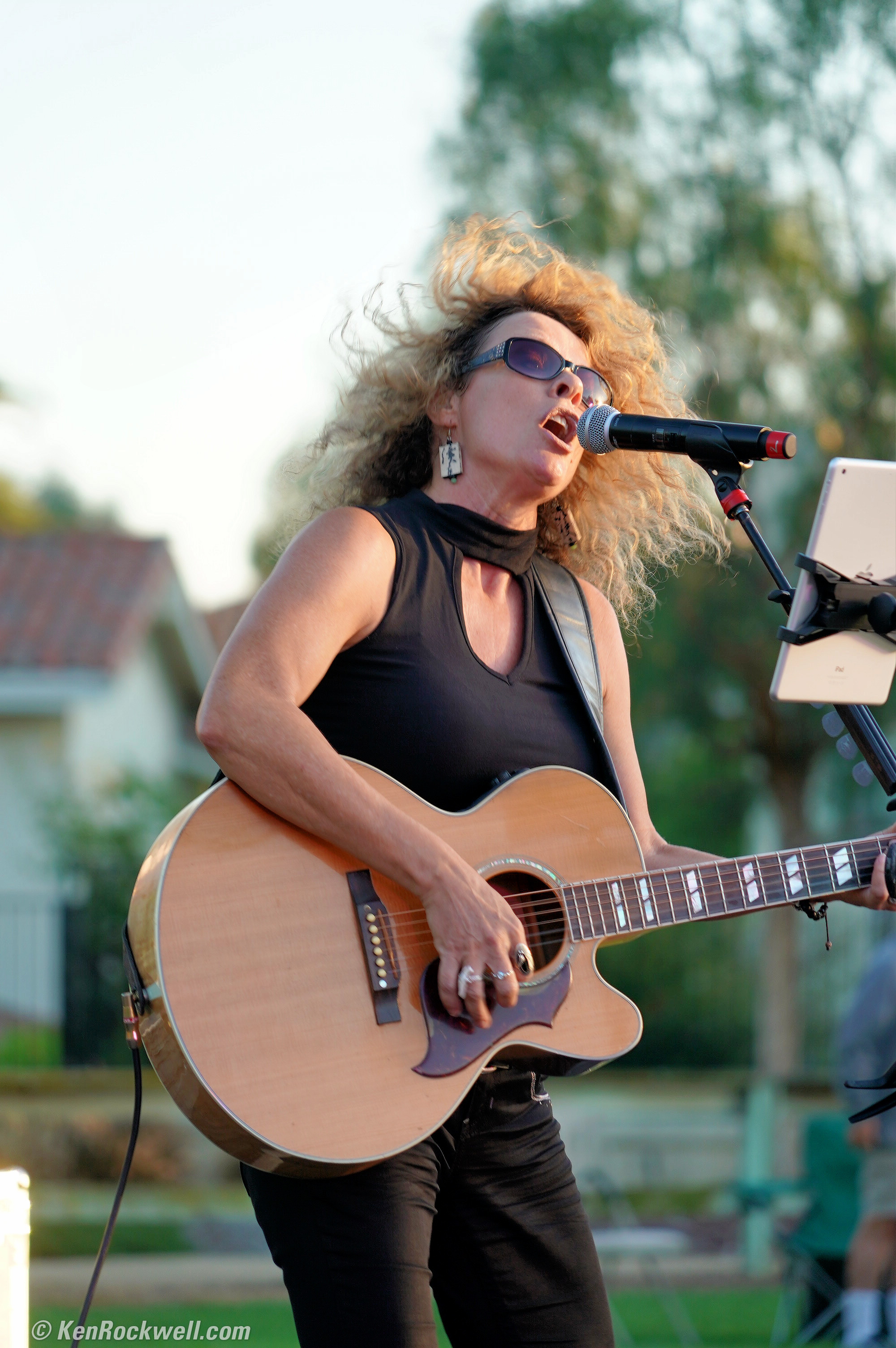 Singer in the park at night. Sony A9, Sony 24-240mm at 240mm wide-open at f/6.3 at 1/125 at Auto ISO 6,400, Perfectly Clear. bigger or full-resolution file.