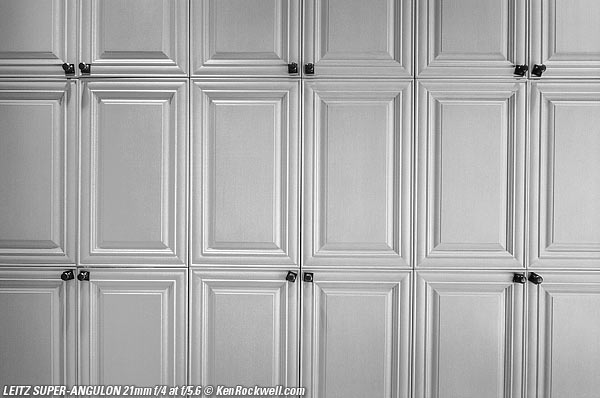 Distortion top The symmetrical LEICA SUPER-ANGULON 21mm f/4 has no visible distortion. See the straight board running along the left side? With most any other 21mm lens it would curve out.