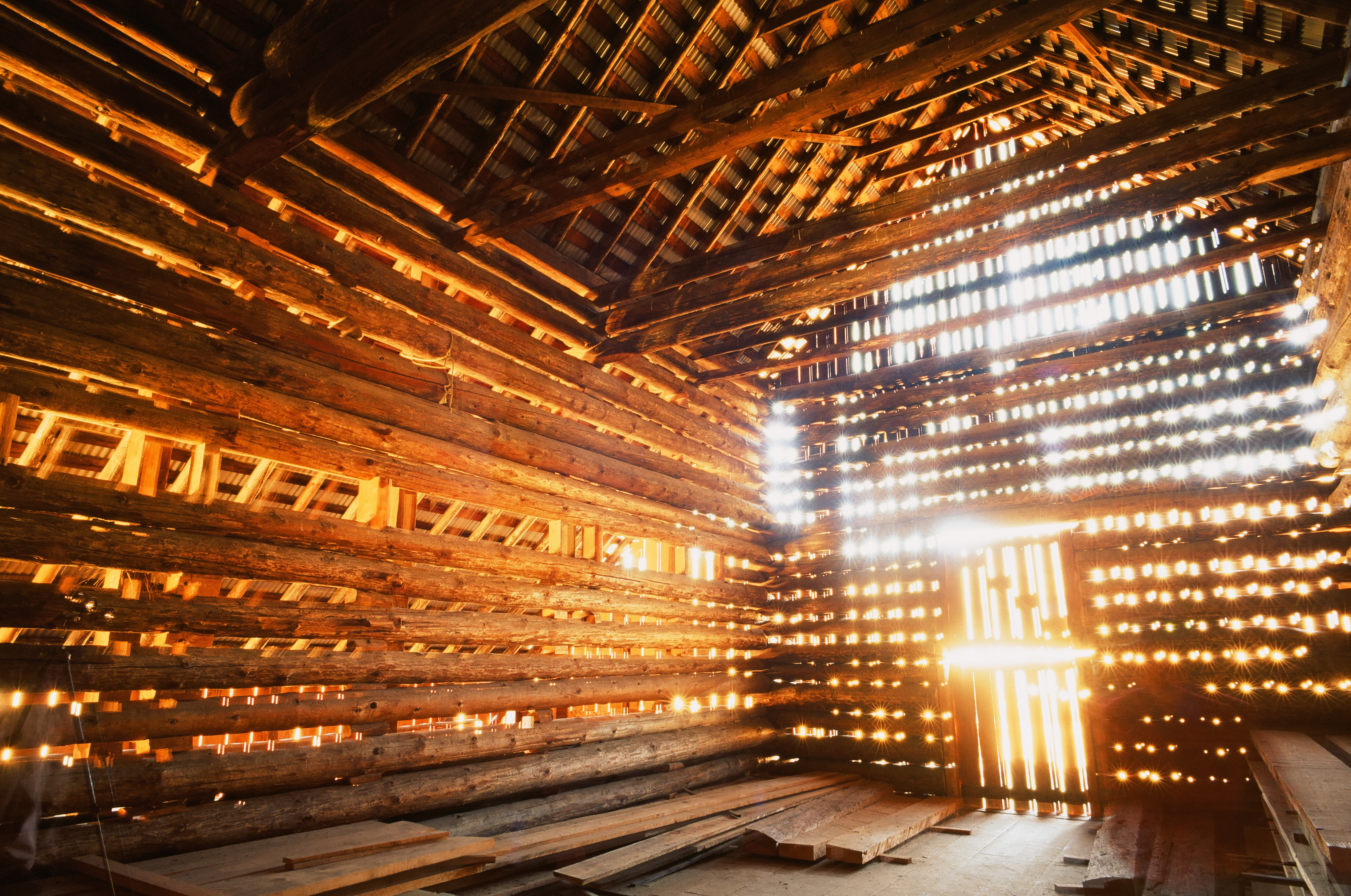 Flare and Ghosts top In spite of my best efforts, I can't get the LEICA 21mm f/4 SUPER-ANGULON to show any flare or ghosts. Bodie, 23 October 2009. Original scan. Photographed with a hand-held 1955 LEICA M3 with a 1959 LEICA 21mm f/4 SUPER-ANGULON, 39mm B+W 81A warming filter, f/8 at 1/100, 5 meter focus distance, Fuji Velvia 50 processed and scanned at NCPS. Does anything look amiss in this shot? No. See the sun in the top window? While I was there, this refection was too blinding for safety or comfort, yet I got no flare, and no ghosts in the dark windows on the bottom. How about this shot, inside a barn? It was so dark I needed a four minute exposure (256 seconds), and the holes between the slats on the left are looking out into full daylight! Barn. Original Scan. Photographed with a 1955 LEICA M3 and a 1959 LEICA 21mm f/4 SUPER-ANGULON with Hoya 39mm 85C filter, Fuji Velvia 50 processed and scanned at NCPS, 4 minutes exposure at f/8, casual use of tripod. The stars you see on the bright points of light are 18-pointed sunstars.