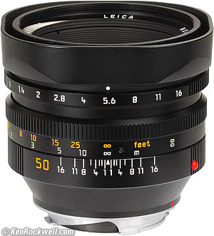 Home Donate New Search Gallery Reviews How-To Books Links Workshops About Contact LEICA 50mm f/1 Intro Specs Performance Compared Recommendations LEICA NOCTILUX-M 50mm f/1, twice actual size (60mm filters, 20.612 oz./584.3g, about $5,000 used). Vergrößern. You can get them at this link to them at eBay (see How to Win at eBay) and you also can get them from Adorama and from Amazon . This free site is supported by your using those, and these links, when you get anything, regardless of the country in which you live. Thanks! Ken.