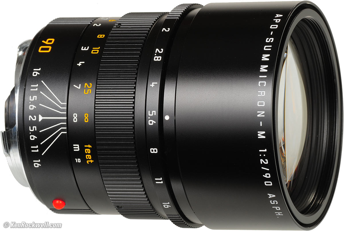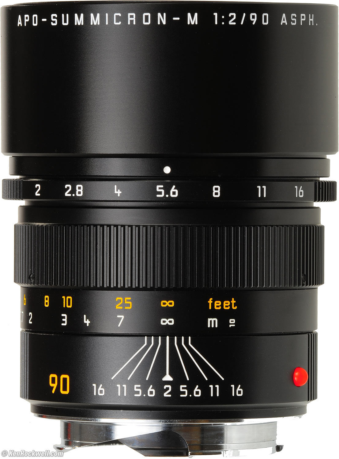 Overall performance top This LEICA 90mm f/2 APO-SUMMICRON-M ASPH is the world's highest-performance 90mm lens. It's fast, sharp and doesn't have any visible distortion. The choices to consider when buying one is the fact that it's bigger than other optically fantastic, but smaller, slower and less expensive lenses. For the LEICA Man who doesn't mind the larger size, weight and 55mm filters, this 90mm f/2 ASPH is his lens.
