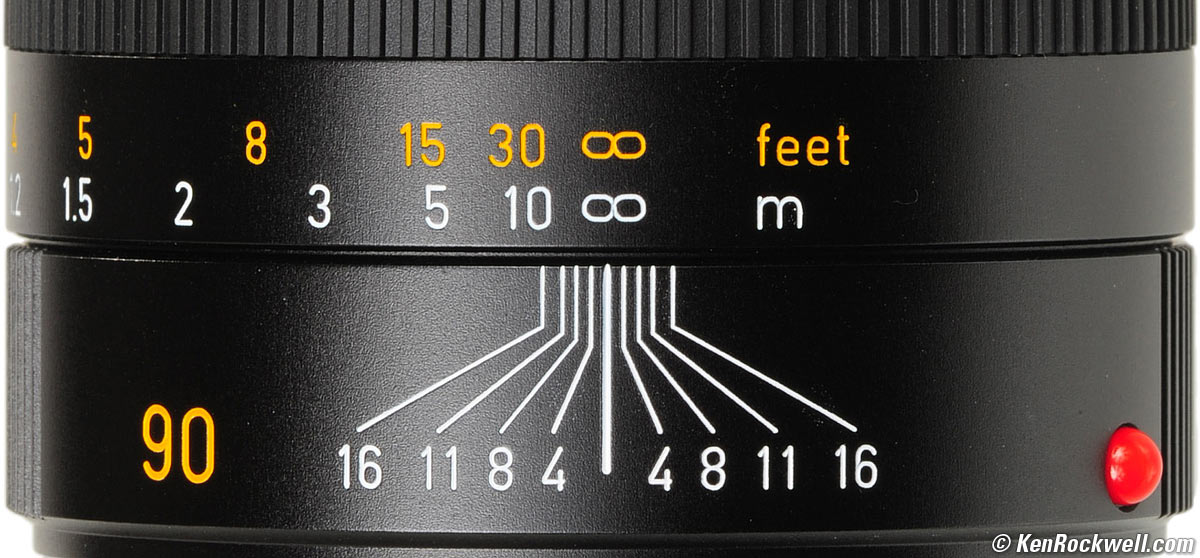 Depth-of-Field Scale performance top Depth of Field Scale, LEICA 90mm f/2.5 SUMMARIT-M. enlarge. The depth of field scale is so tight that it's just about useless. The 90mm f/2 APO has a far more useful scale, because it's a bigger lens.