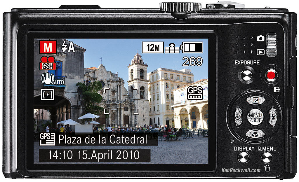 The LEICA V-LUX-20 appears to be the Panasonic DMC-ZS7 point-and-shoot camera relabeled as LEICA. I'd ignore any of these; I prefer the Canon S90. This V-LUX-20 seems so complex that I doubt I'd ever figure it out, and the S90 has a much, much faster lens (f/2 versus f/3.3) , twice the sensor area (1/1.67" vs. 1/2.33"), and broader clean ISO range for use in any light. Not only do I suspect the S90 is twice as good; the S90 sells for half as much. If price matters and you want this LEICA, the Panasonic version with exactly the same LEICA lens sells for half the price, in your choice of about four colors. I'll let you know when I actually get my hands on a production sample with a more detailed review. Fluff from LEICA's press release: Solms, Germany (April 20, 2010) - Leica Camera AG presents a new, 12.1 megapixel digital compact camera: the LEICA V-LUX 20. Equipped with a high performance DC-VARIO ELMAR lens, innovative GPS tagging, optional HD movie recording and various automated functions, the V-LUX 20 is a truly universal camera, capable of capturing all moments of life. Back, LEICA V-LUX-20 (fake LCD photo). bigger. Note all the incomprehensible gibberish over your picture. The DISP button should rectify this.