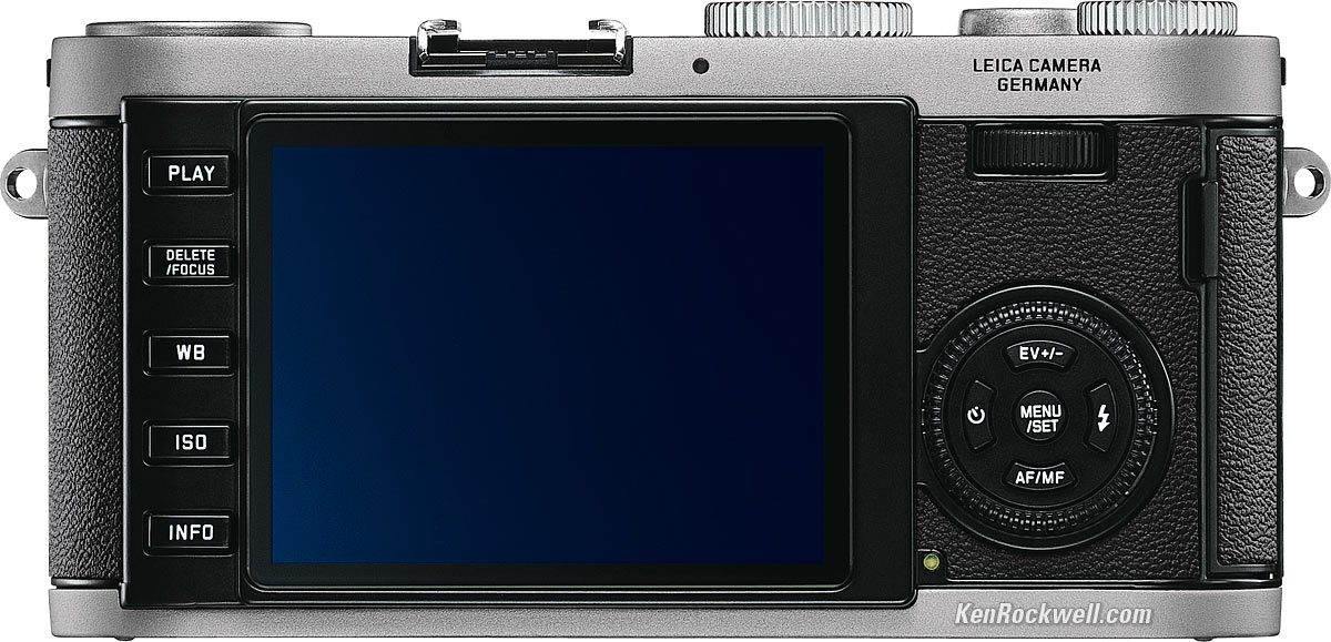 LCD and Playback Back, LEICA X1. enlarge. 2.7" LCD, looks like it's full-height 3:4 or 2:3 ratio, not squinty 16:9. 230,000 pixels. The larger 3" LCD of the Olympus E-P1 has the same number of pixels.