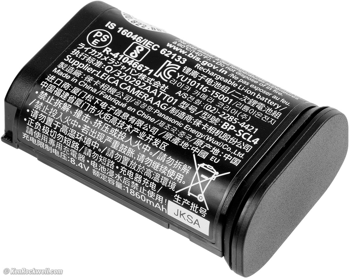 BP-SCL4 Battery specifications topRated 370 shots per charge. 7.2V, 1,860 mAh. There is also an internal rechargeable battery for the clock. It charges in an hour when the main battery is in, and can run the clock for two months with no main battery. LEICA BP-SCL4 Battery. größer.