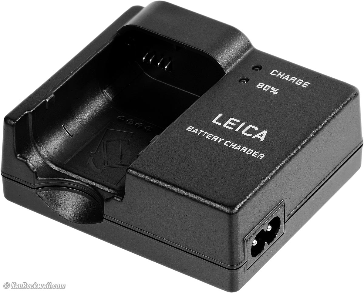 Batteries & ChargingThere is no battery door; the whole battery pops in and out of a hole and lies flush to the bottom of the body. To remove the battery, push the silver lever to the left, and the battery pops out a little. Here's the secret: the battery has a safety stop so it won't fall out. Tap the battery back in a little to release it all the way. The battery arrives dead. Pop it in the charger as soon as your Q2 arrives so you can get out shooting as soon as possible while you set up the rest of the camera. Flashing green CHARGE LED means charging. Flashing green CHARGE LED and steady Orange 80% LED means charging, and that you have at least 80% charge. If you're in a rush, consider yourself charged and take out the battery and run with it. It takes about as long to get to 100% from 80% as it takes to get from 0% to 80%, so if you're in a rush, it's even better for long battery life to just take it at 80%. When both the Green CHARGE LED and Orange 80% LED are steady, you're done charging at 100%.