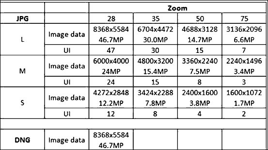 Image Sensor specifications top8,368 × 5,584 pixels native (46,726,912 pixels or 47 MP).24 × 36 mm CMOS. 14-bit quantization. 13 stop dynamic range. 3:2 aspect ratio. 1.0 × crop factor.