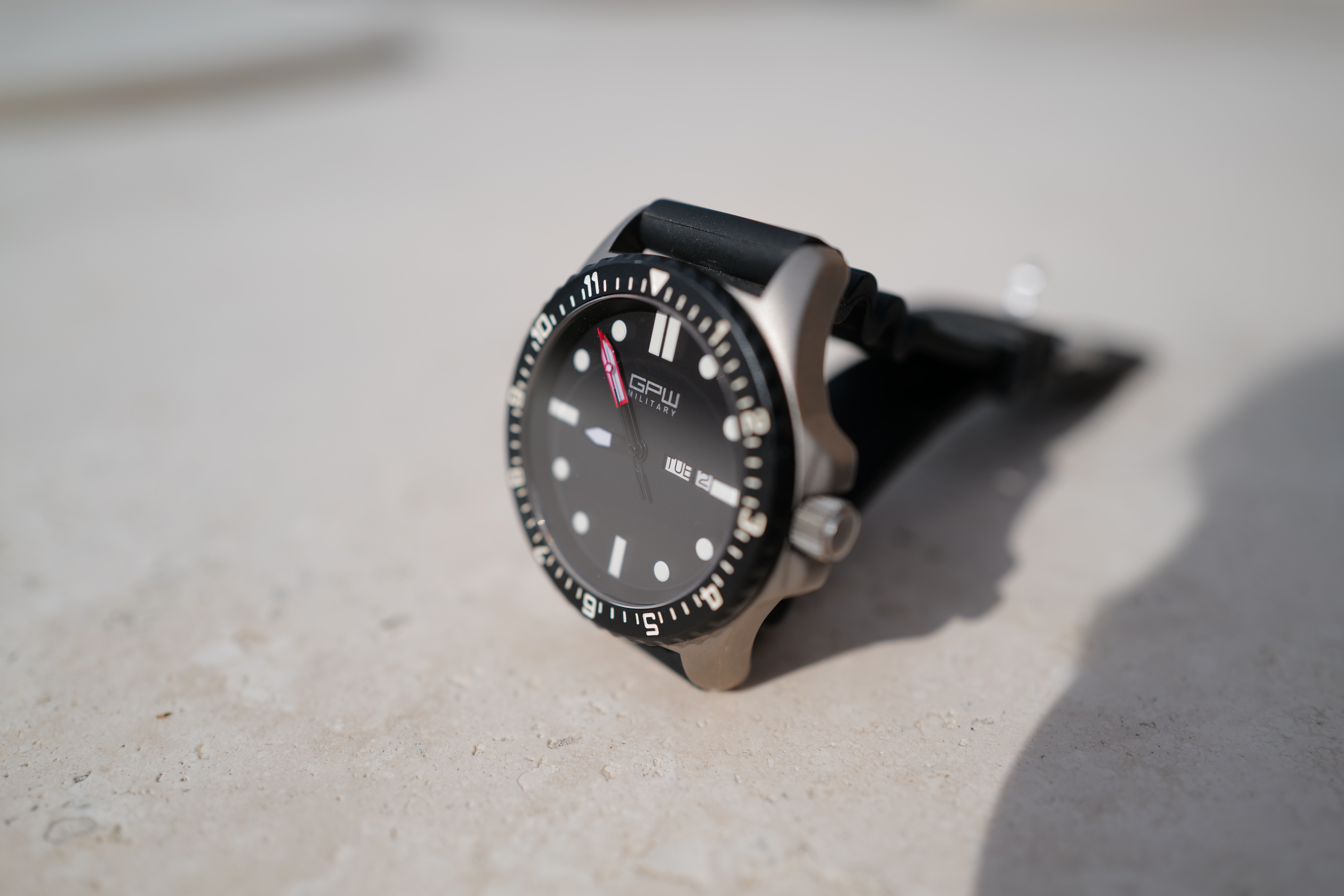 Macro Performance performance topMacro gets pretty close, and sharpness and bokeh look great. Just turn the lens ring nearest the body to MACRO and you're in business. The crop modes also work in MACRO mode, so you can appear to get even closer. I'm not showing that here. The lens will not open beyond f/2.8 in the MACRO setting. This is to limit lens aberrations at close distances. MADE IN GERMANY GPW Military Titanium Watch at closest macro distance, 8:54 AM, 02 June 2020. LEICA Q2, LEICA SUMMILUX 28mm f/1.7 ASPH at f/2.8 at 1/4,000 at Auto ISO 100 (LV 14.9), Perfectly Clear. größer or camera-original 11 MB, 47 MP © JPG file.