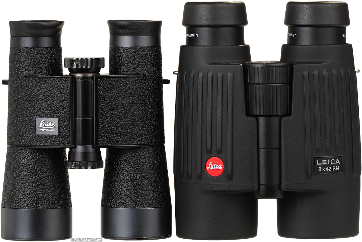 Yes, newer binoculars have numerous little features, like closer focusing, locking diopter adjustments and more eye relief, but all these little things just don't add up to making up for the extra weight and lost field-of-view. These 52-year-old binoculars are just as sharp, remember, Leitz knew more about what they were doing back then than Nikon or Canon knows about SLRs today, and Leitz spared no expense when it came to quality.