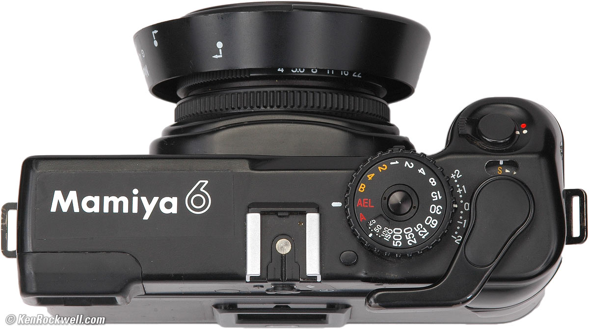 Lenses All three lenses are spectacular. The 50mm lens is one of the most perfect lenses I have ever used. It tests much better than the Zeiss Distagon for the Rolleiflex and the same as the Zeiss lens on the Hasselblad. See Photodo.com for details. Need I say more? The fact that these are rangefinder lenses and can be designed without having to work around the rear lens extension interfering with an SLR mirror allows the Mamiya 6's lenses to outdo the SLR systems. Don't get all serious about this, the Zeiss lenses are also excellent and any differences between these are invisible except in a laboratory. All three lenses have their own electronic leaf shutters providing speeds from 4 seconds to 1/500 and Bulb. Manual shutter control is at full stops while automatic control is stepless. Apertures of course may be set anywhere and the meter reads this, too. Electronic shutter control gives perfect accuracy at slower speeds and is limited only by shutter efficiency issues at the very top speeds. The shutters never require calibration. They are far more accurate than any mechanical shutter as on most Leica, Hasselblad and large format cameras. Flash sync on all lenses is at all speeds including 1/500, which is twice the speed of any Canon, Nikon or Leica.