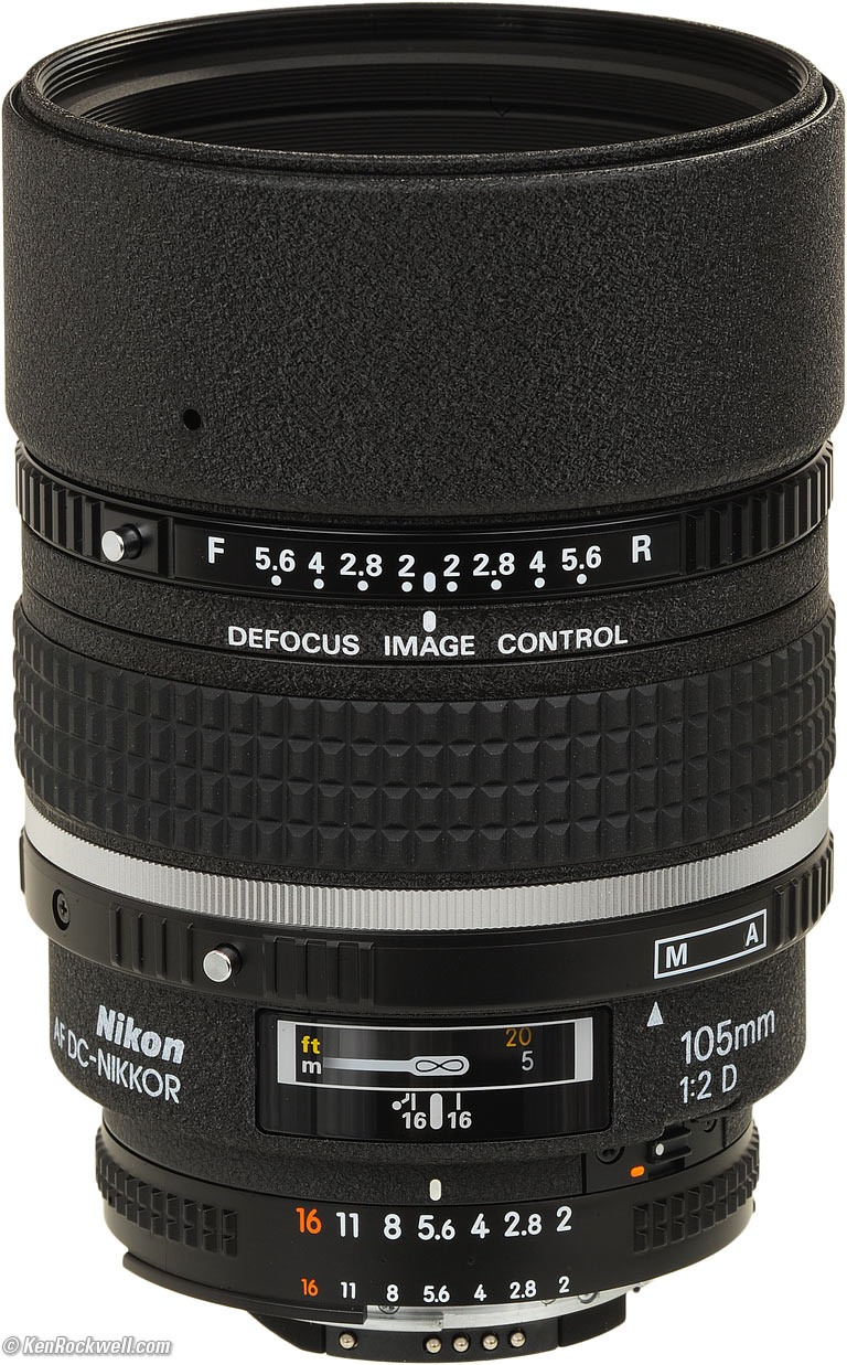 Ideal Uses: Nikon's best-built and one of their sharpest 105mm lenses, and better bokeh than any other Nikon 105. Not for: Cheapskates. As a pro lens, it's priced right for a lens which could last you the rest of your life. This is Nikon's best 105mm lens unless you specifically need macro ability. This DC lens is at least as sharp as the 105mm macro, with superior build quality, bokeh and speed. Introduction top Intro Specs Performance Recommendations Defocus Image Control Focus Compatibility
