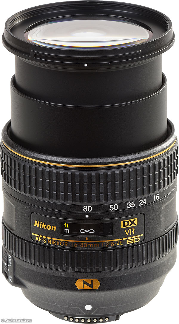 Nikon 16-80mm VRf/2.8~4 DX AF-S E N ED (2015-c.2023)Sample Images Intro Compatibility Compared Usage Recommendations Nikon 16-80mm VR (DX coverage only, 72mm filter thread, 16.9 oz./479 g, 1.15'/0.35m close focus, about $350 used). bigger. I'd get mine used at eBay (How to Win at eBay). This all-content, junk-free website's biggest source of support is when you use any of these links to approved sources when you get anything, regardless of the country in which you live. Nikon does not seal its boxes, so never buy at retail or any source not on my personally approved list since you'll have no way of knowing if you're missing accessories, getting a defective or damaged customer return or a used lens. Buy only from the approved sources I use myself for the best prices, service, return policies and selection. Thanks for your support! Ken.