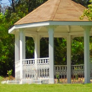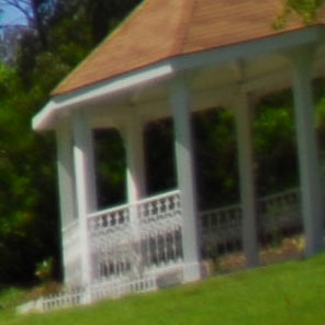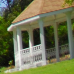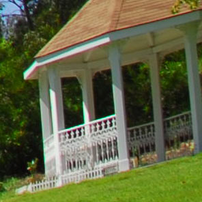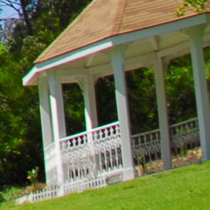 Here are crops from the 100% D200 (DX) images with the gazebo at the corner. These complete images again would print at 39 " (1m) wide if you printed the whole image.